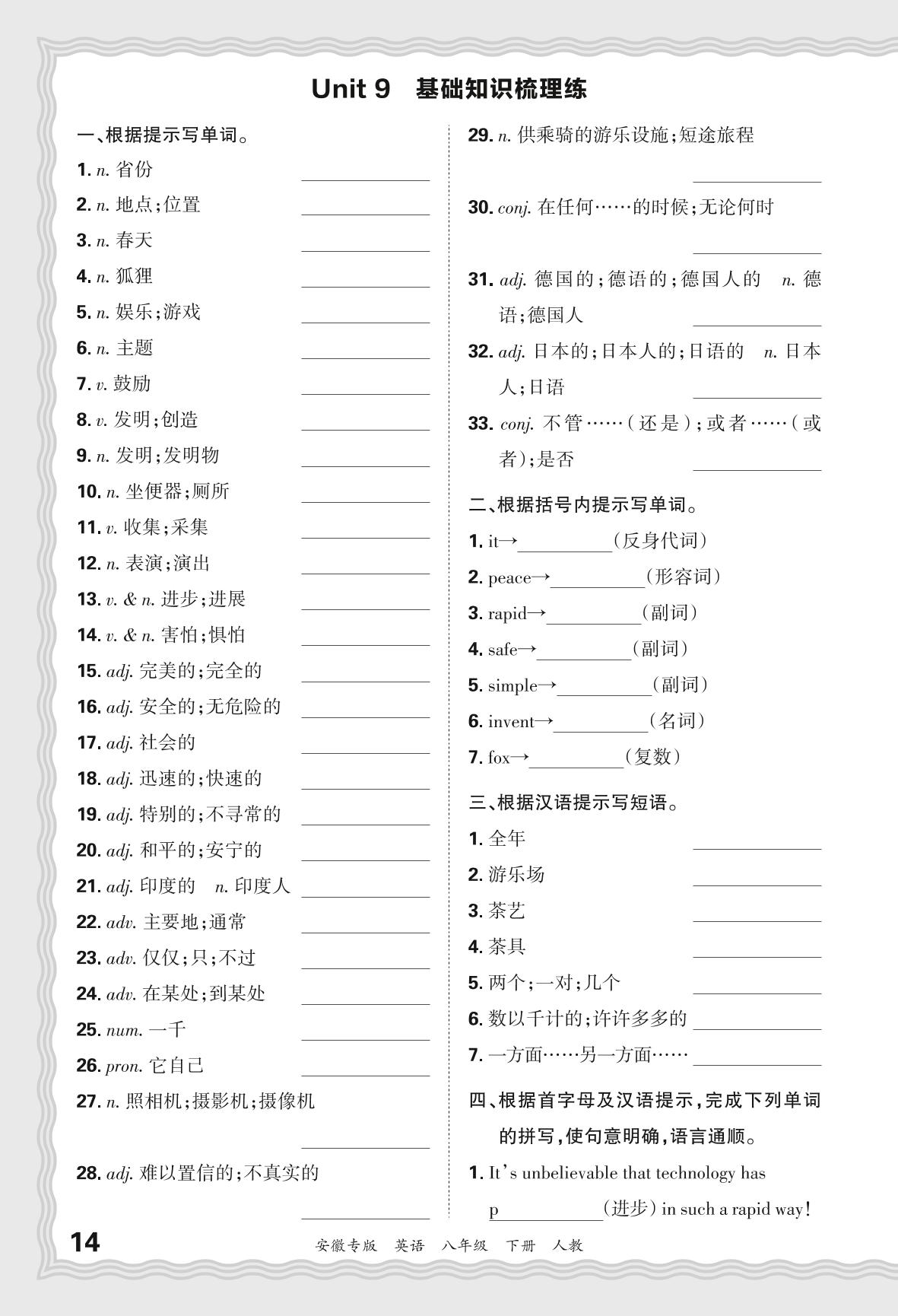 2024春下册八年级英语人教版 期末过课本安徽版·Unit 9 基础知识梳理练