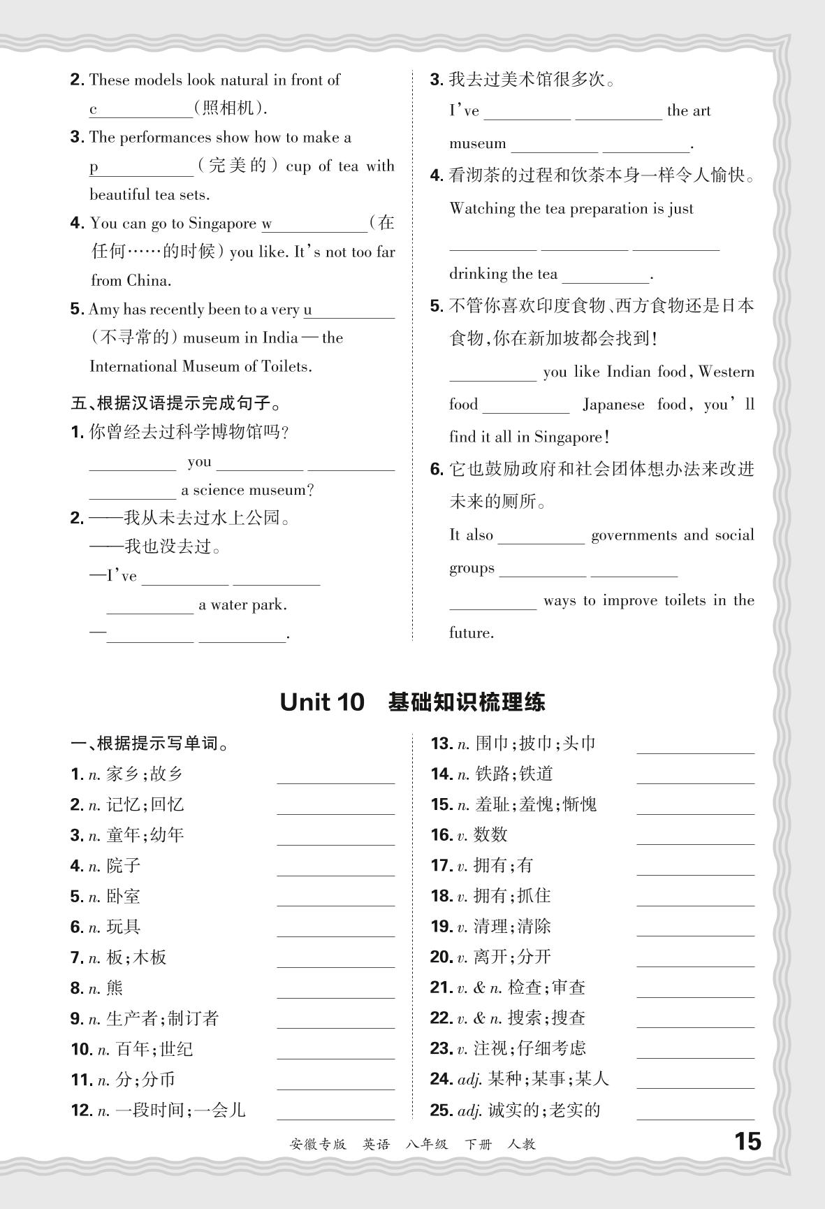 2024春下册八年级英语人教版 期末过课本安徽版·Unit 10 基础知识梳理练