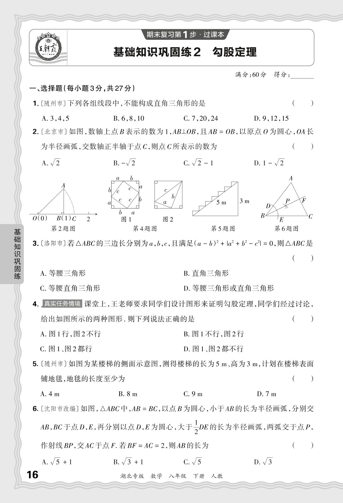 2024春下册八年级数学人教版 期末过课本湖北版·基础知识巩固练 勾股定理【2】