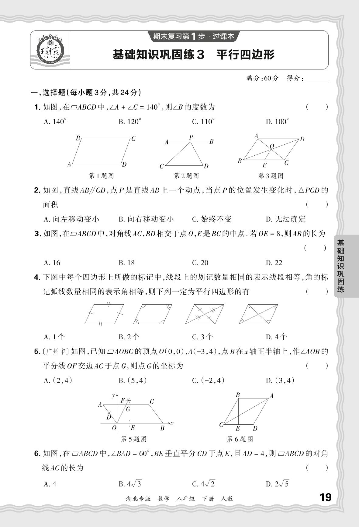 2024春下册八年级数学人教版 期末过课本湖北版·基础知识巩固练 平行四边形【3】