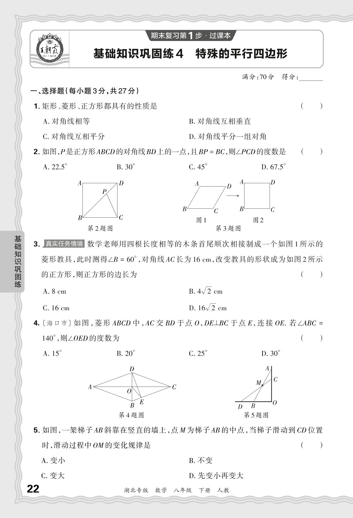 2024春下册八年级数学人教版 期末过课本湖北版·基础知识巩固练 特殊的平行四边形【4】