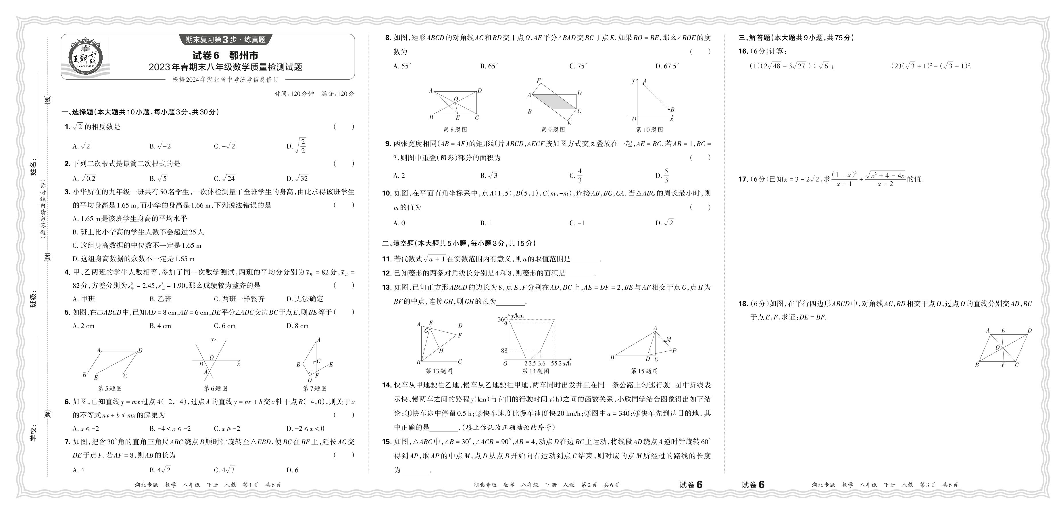 湖北省鄂州市2023年春期末八年级数学质量检测试题(人教版)【6】