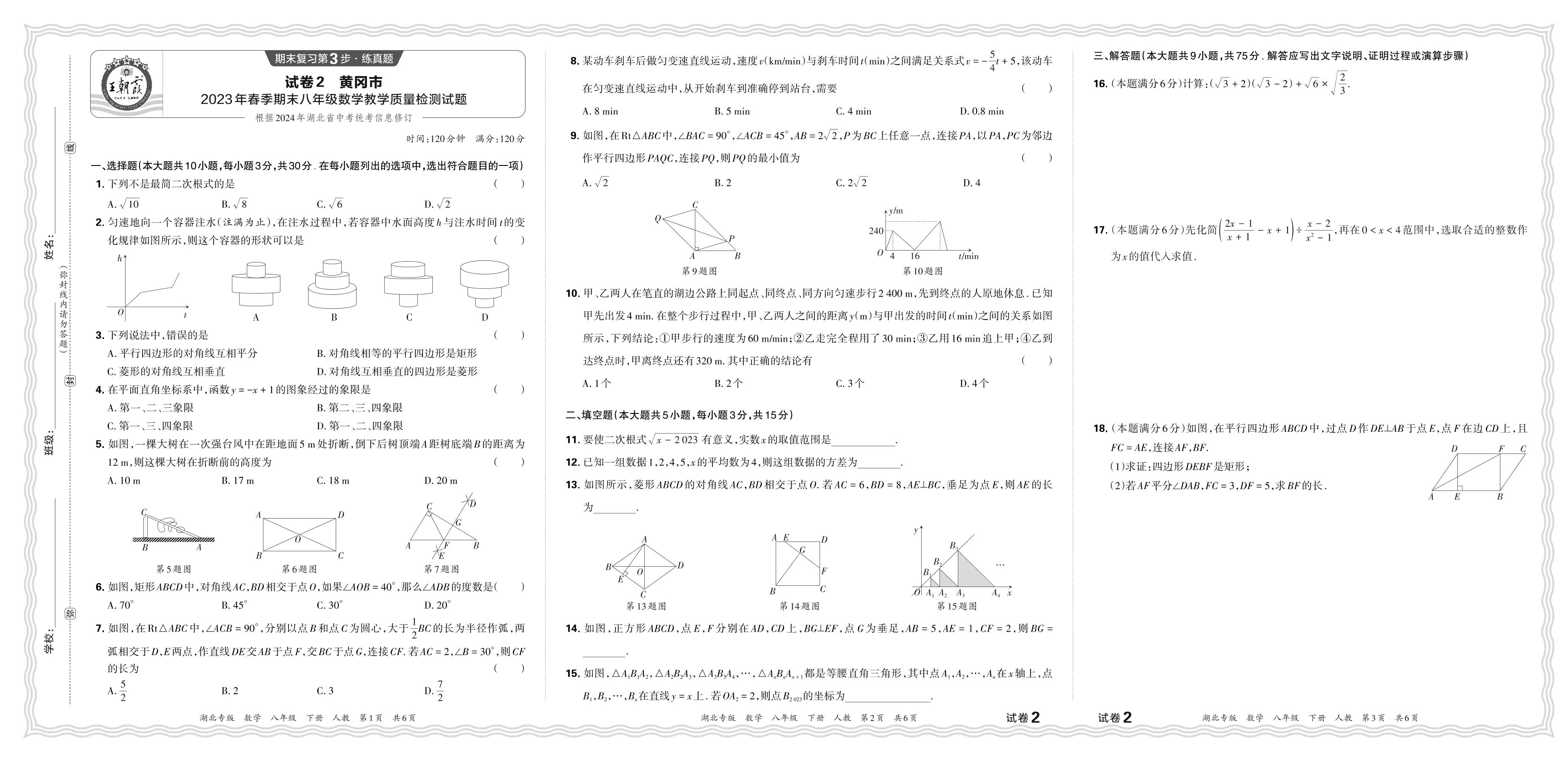 湖北省黄冈市2023年春季期末八年级数学教学质量检测试题(人教版)【2】