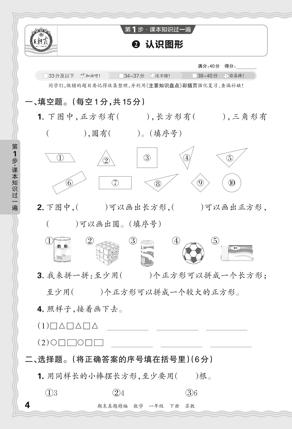 2024春下册一年级数学苏教版 期末过课本JB版·认识图形【2】