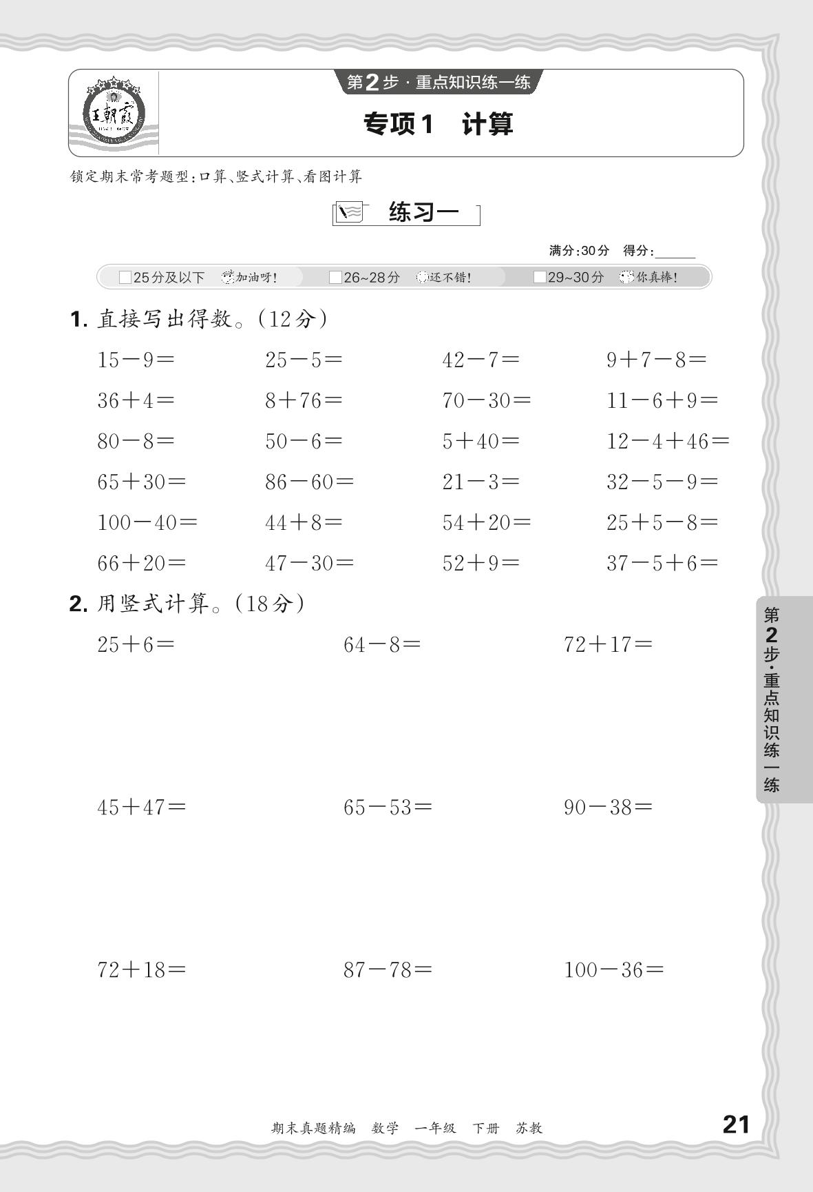 2024春下册一年级数学苏教版 期末专项卷JB版·计算【1】