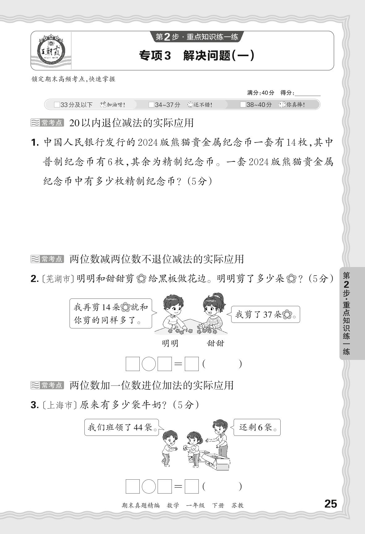 2024春下册一年级数学苏教版 期末专项卷JB版·解决问题(一)【3】