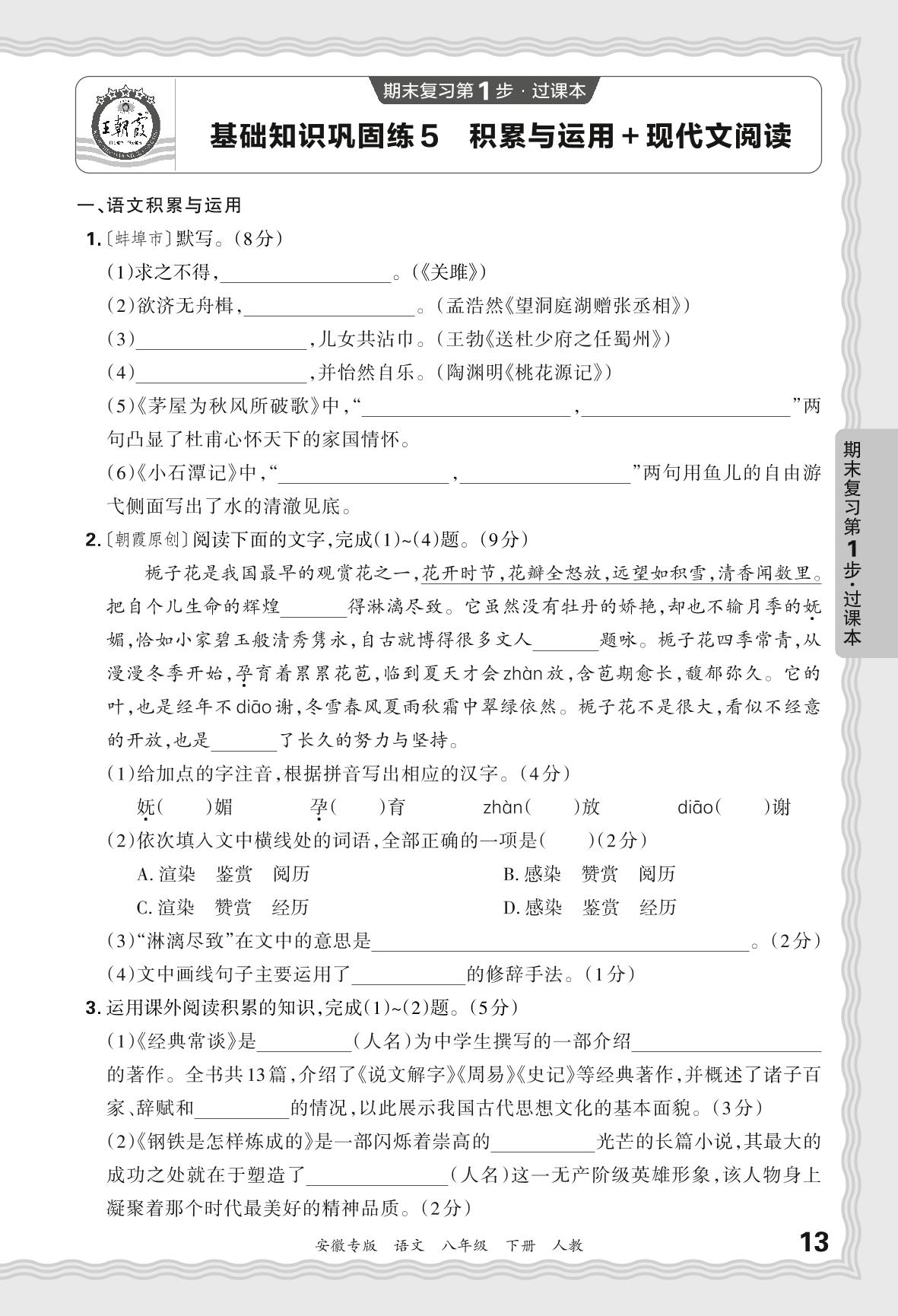 2024春下册八年级语文人教版 期末过课本安徽版·基础知识巩固练 积累与运用+现代文阅读【5】