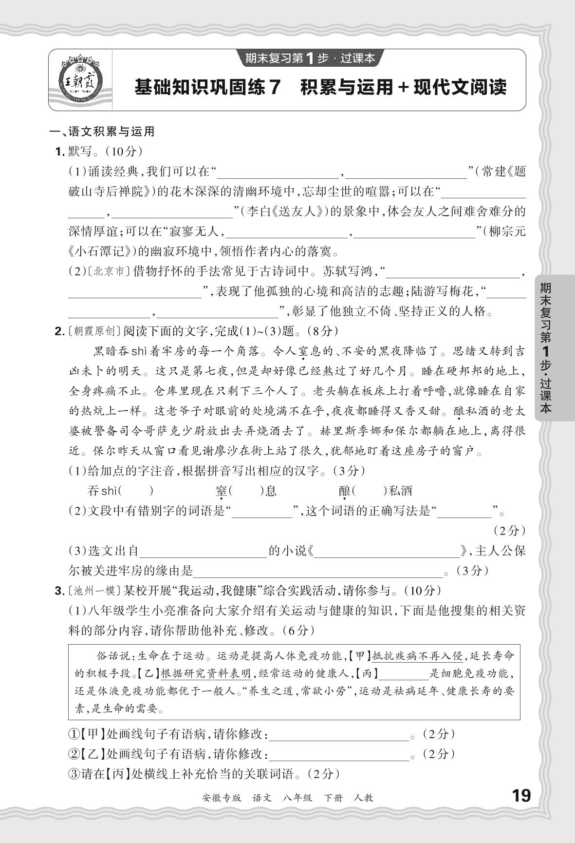 2024春下册八年级语文人教版 期末过课本安徽版·基础知识巩固练 积累与运用+现代文阅读【7】
