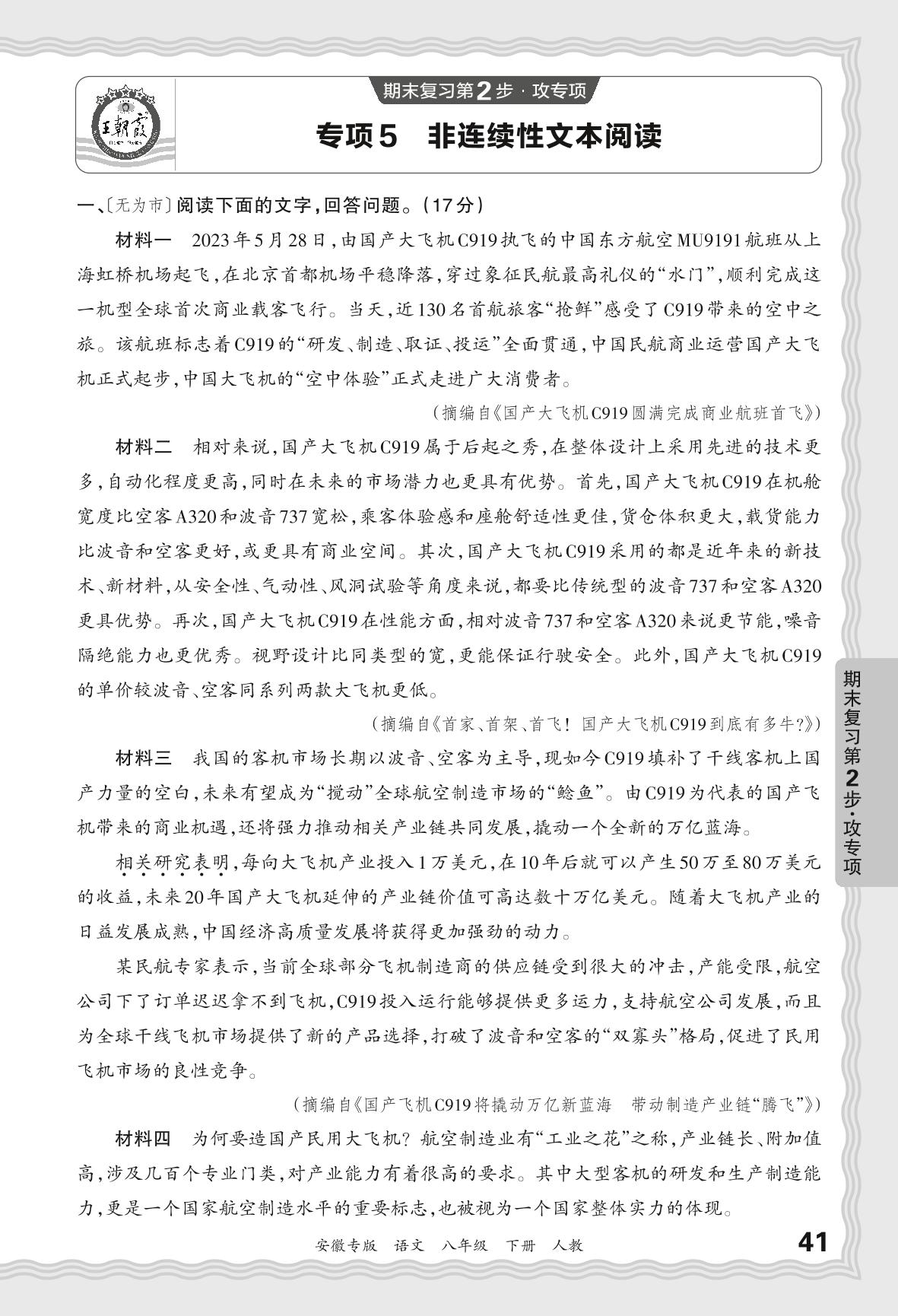 2024春下册八年级语文人教版 期末专项卷安徽版·非连续性文本阅读【5】