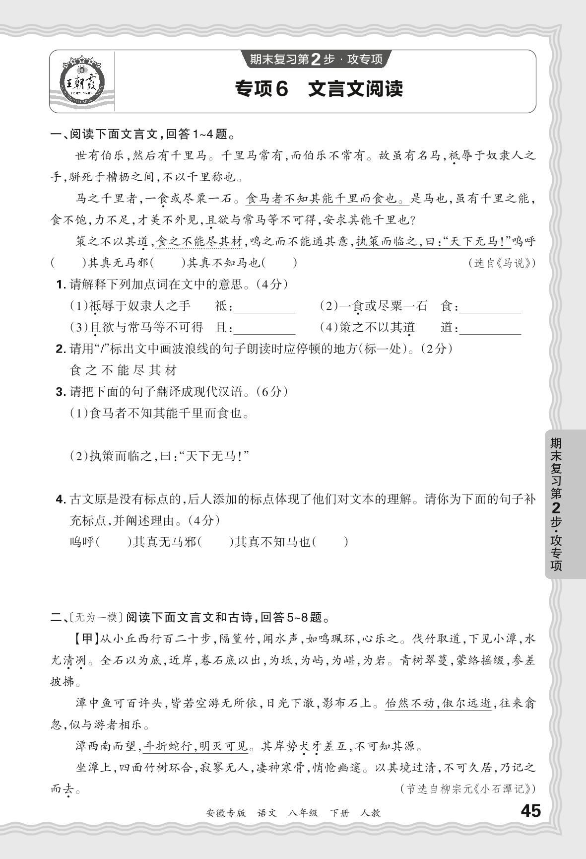 2024春下册八年级语文人教版 期末专项卷安徽版·文言文阅读【6】