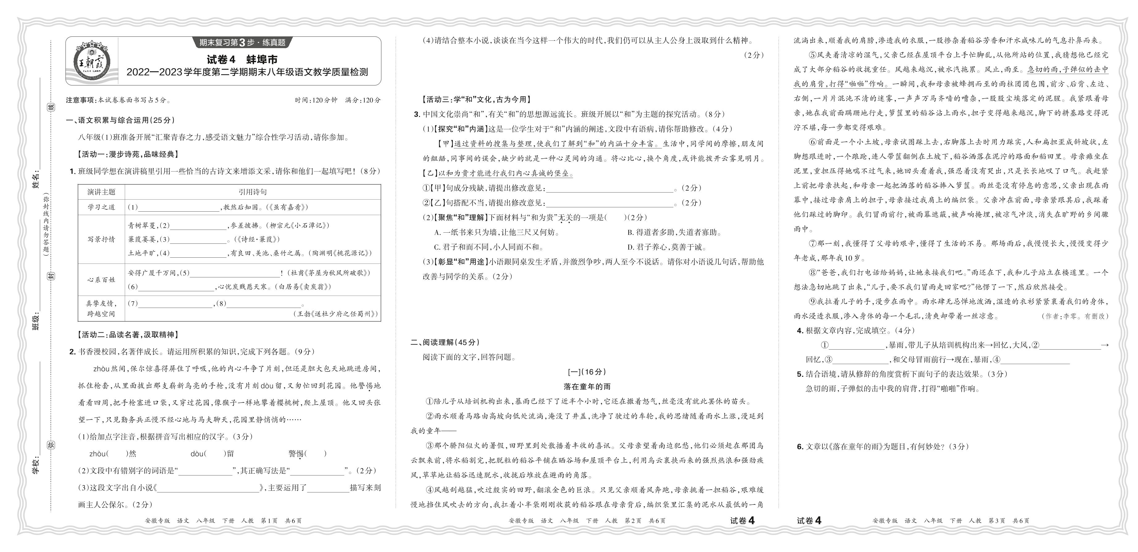 安徽省蚌埠市2022-2023学年度第二学期期末八年级语文教学质量检测(人教版)【4】