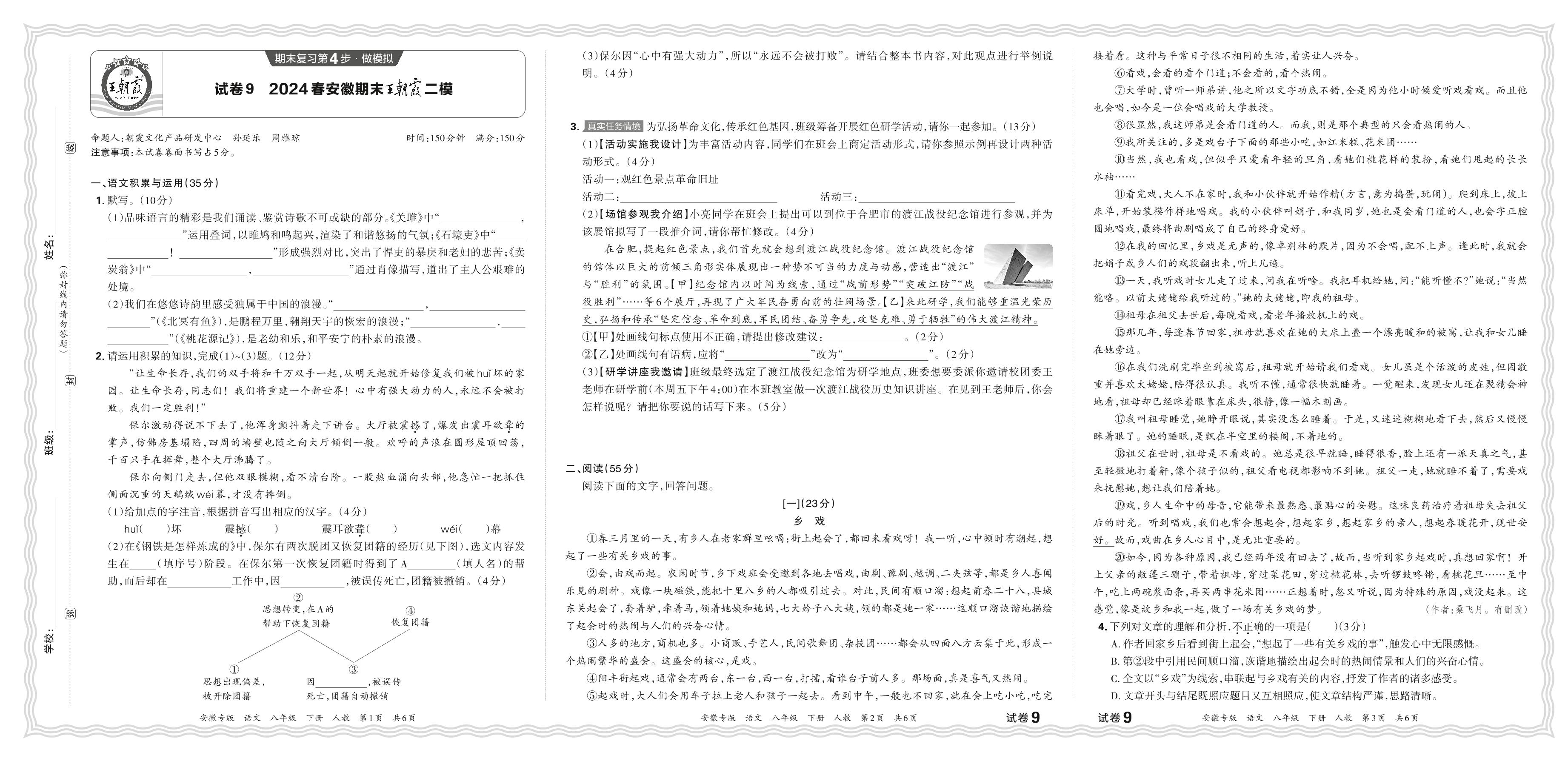 2024春下册八年级语文人教版 安徽期末王朝霞二模