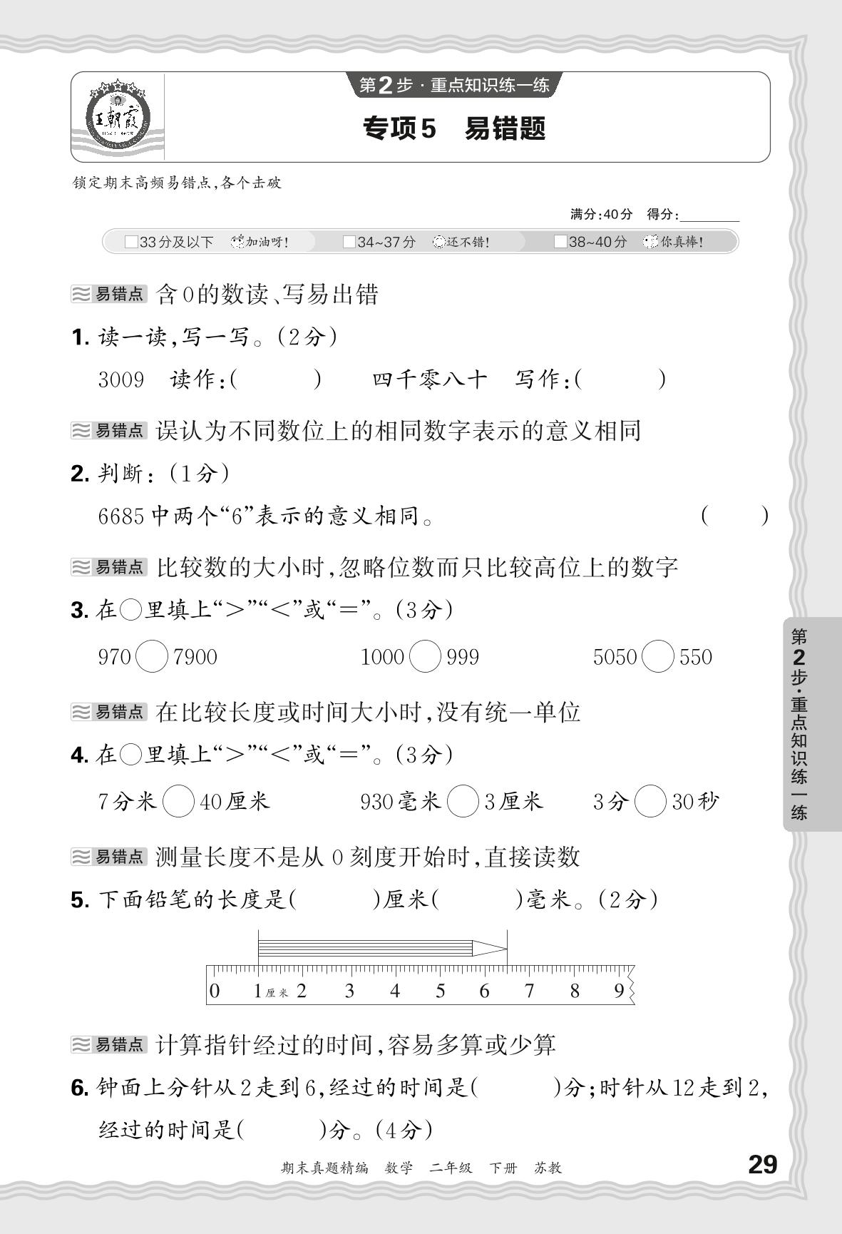 2024春下册二年级数学苏教版 期末专项卷JB版·易错题【5】