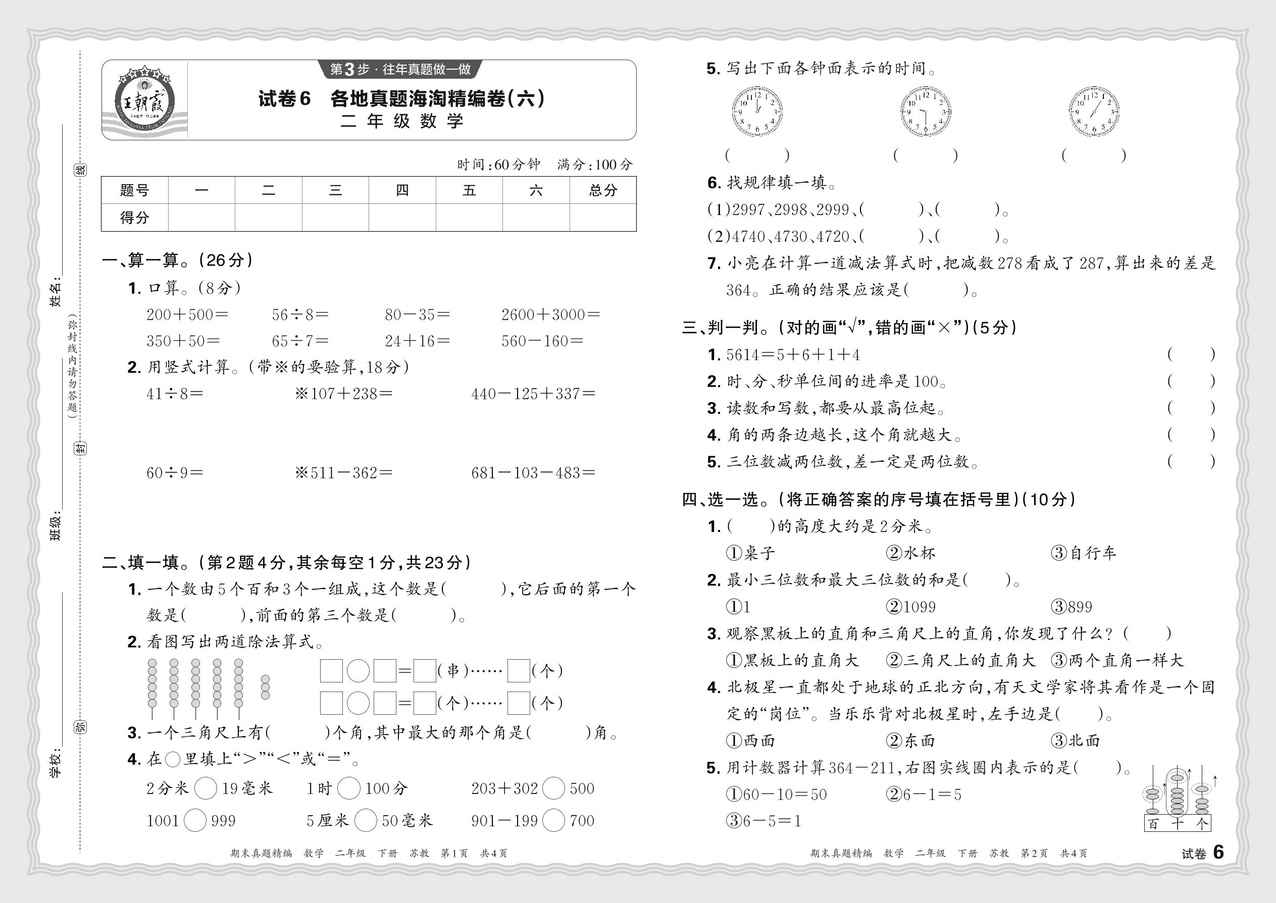 2024春下册二年级数学苏教版 各地真题海淘精编卷(六)JB