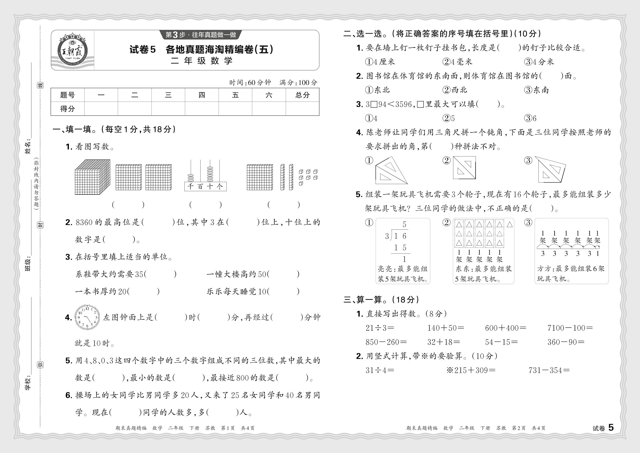 2024春下册二年级数学苏教版 各地真题海淘精编卷(五)JB