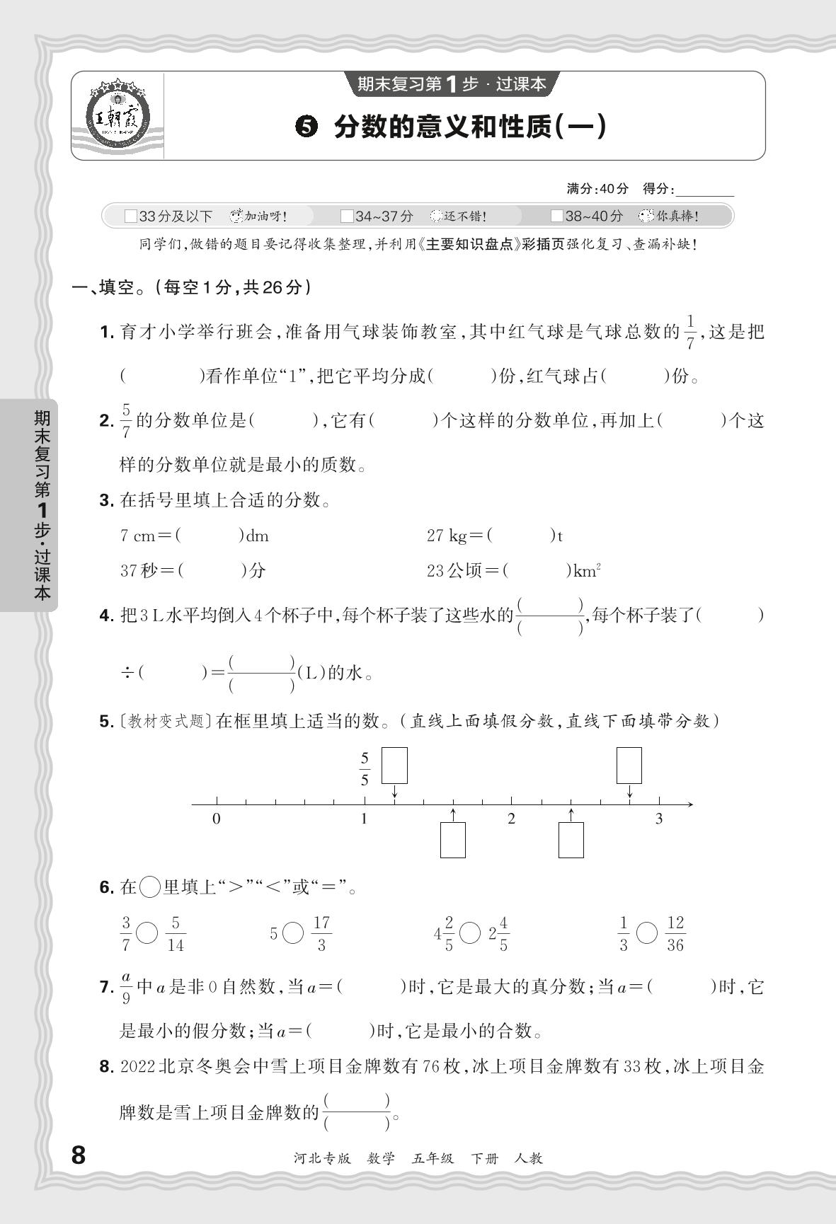 2024春下册五年级数学人教版 期末过课本河北版·分数的意义和性质(一)【5】