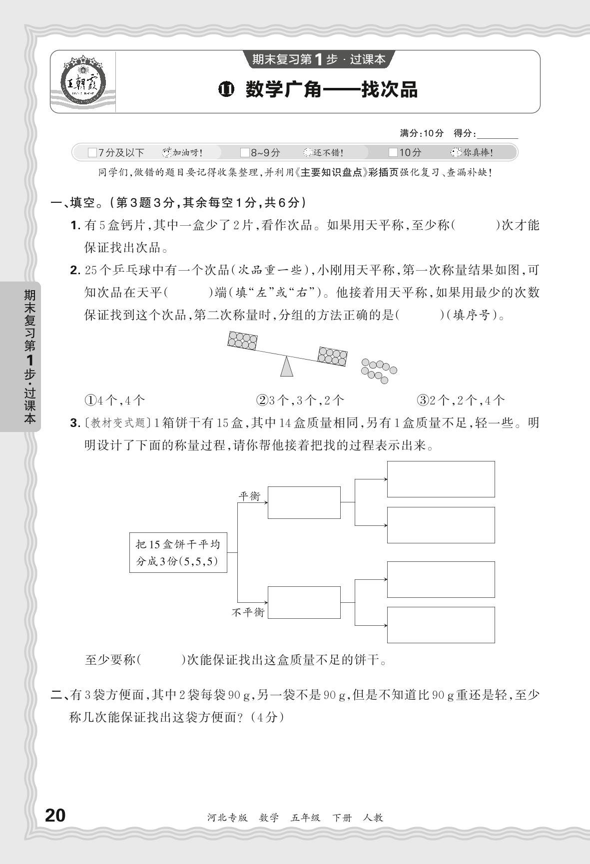 2024春下册五年级数学人教版 期末过课本河北版数学广角——找次品【11】