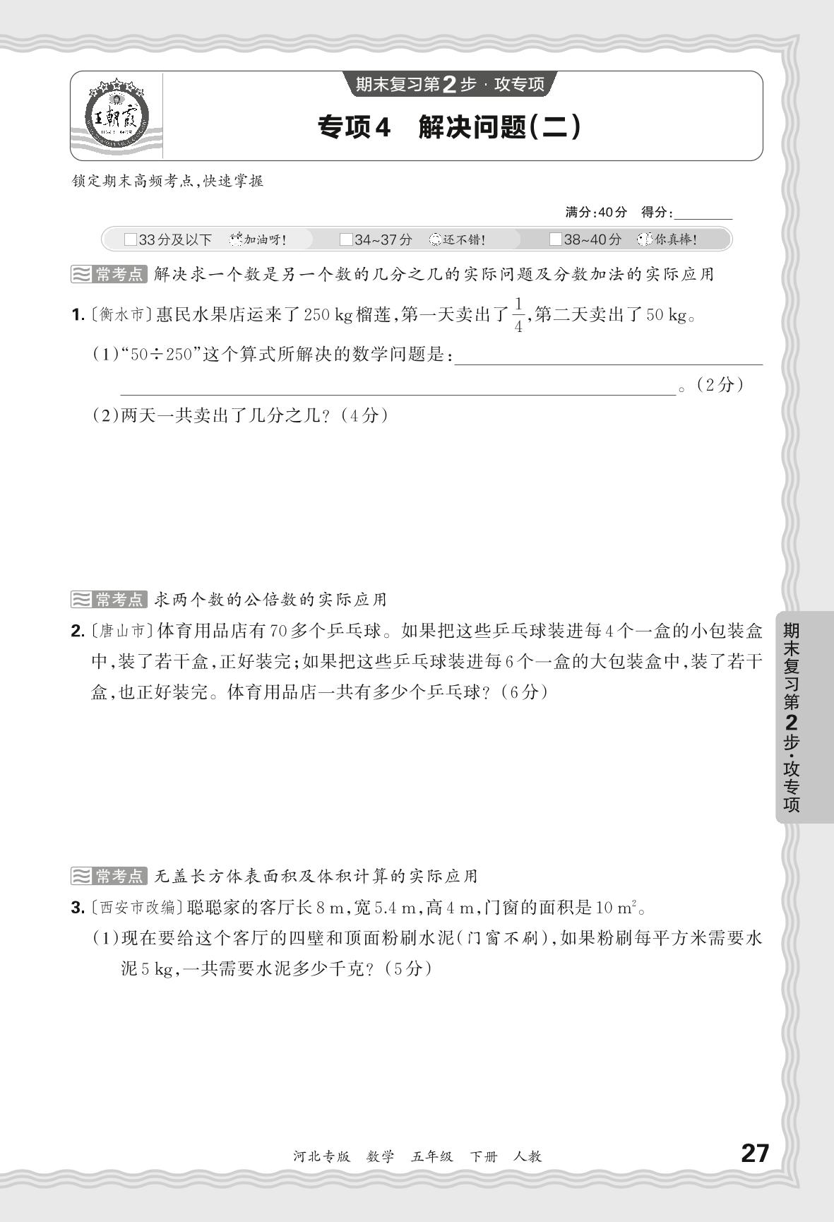 2024春下册五年级数学人教版 期末专项卷河北版·解决问题(二)【4】