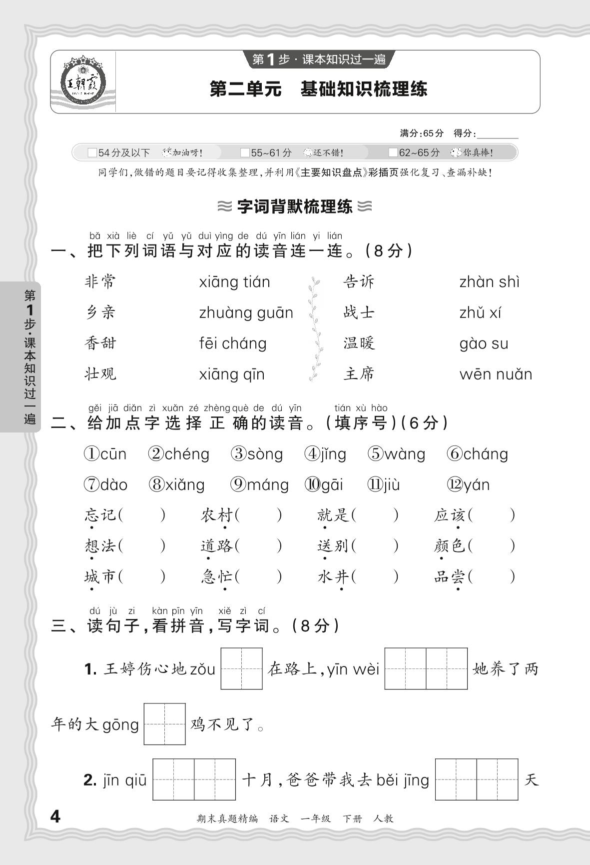2024春下册一年级语文人教版 期末过课本JB版·第二单元 基础知识梳理练