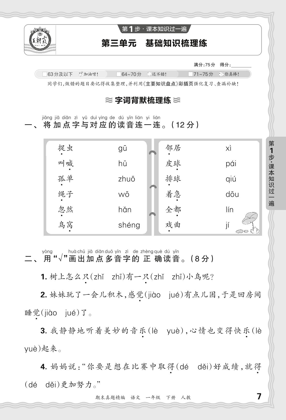 2024春下册一年级语文人教版 期末过课本JB版·第三单元 基础知识梳理练