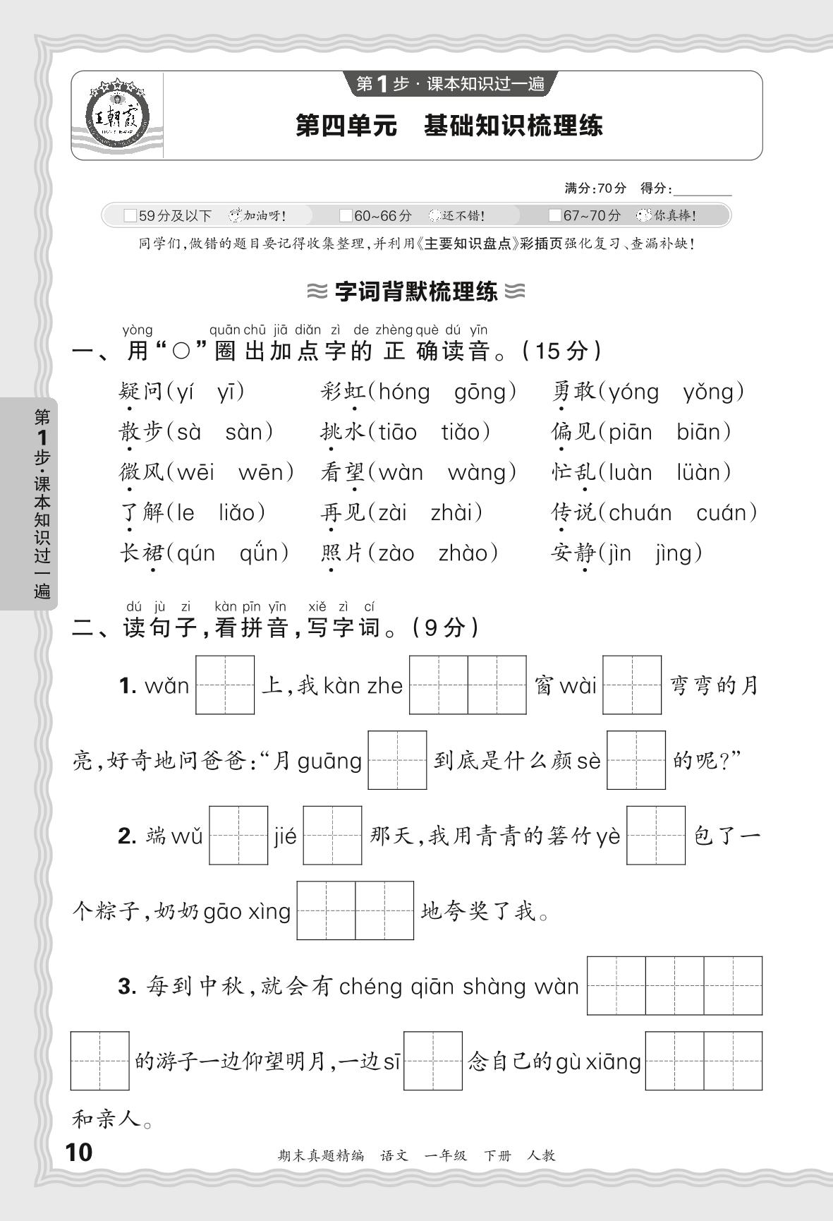 2024春下册一年级语文人教版 期末过课本JB版·第四单元 基础知识梳理练