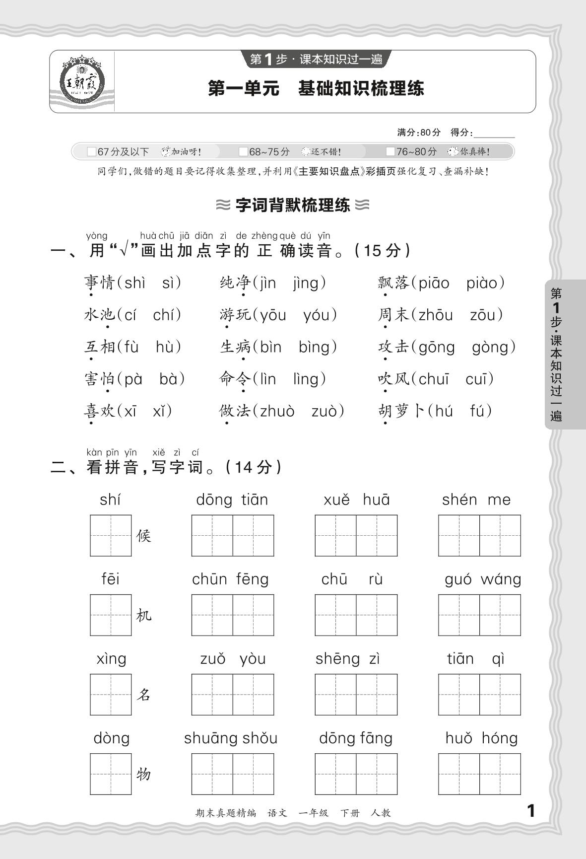 2024春下册一年级语文人教版 期末过课本JB版·第一单元 基础知识梳理练