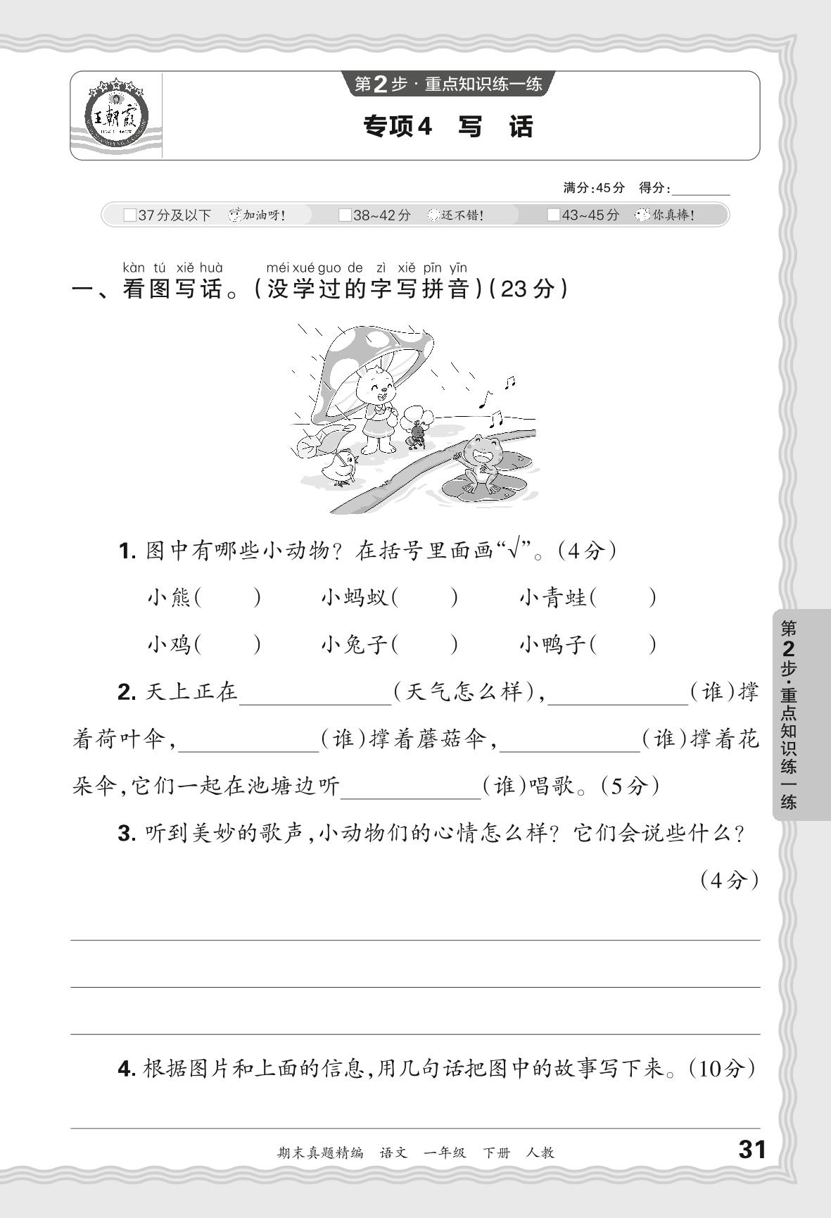 2024春下册一年级语文人教版 期末专项卷JB版·写话【4】