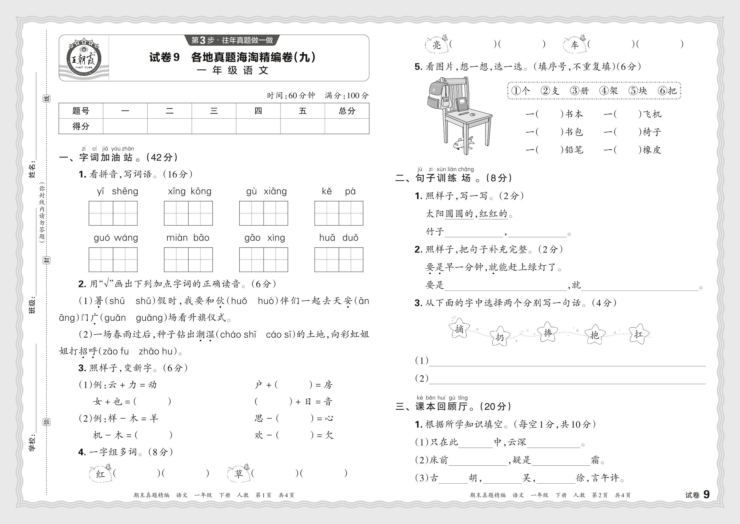 2024春下册一年级语文人教版 各地真题海淘精编卷(九)JB