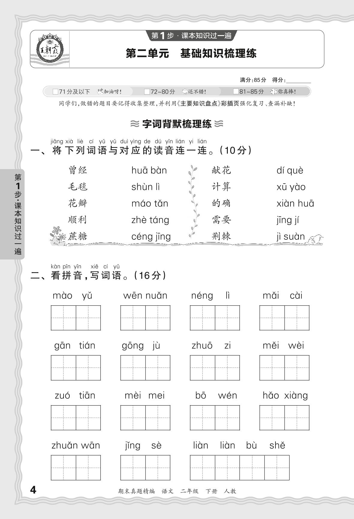 2024春下册二年级语文人教版 期末过课本JB版·第二单元 基础知识梳理练