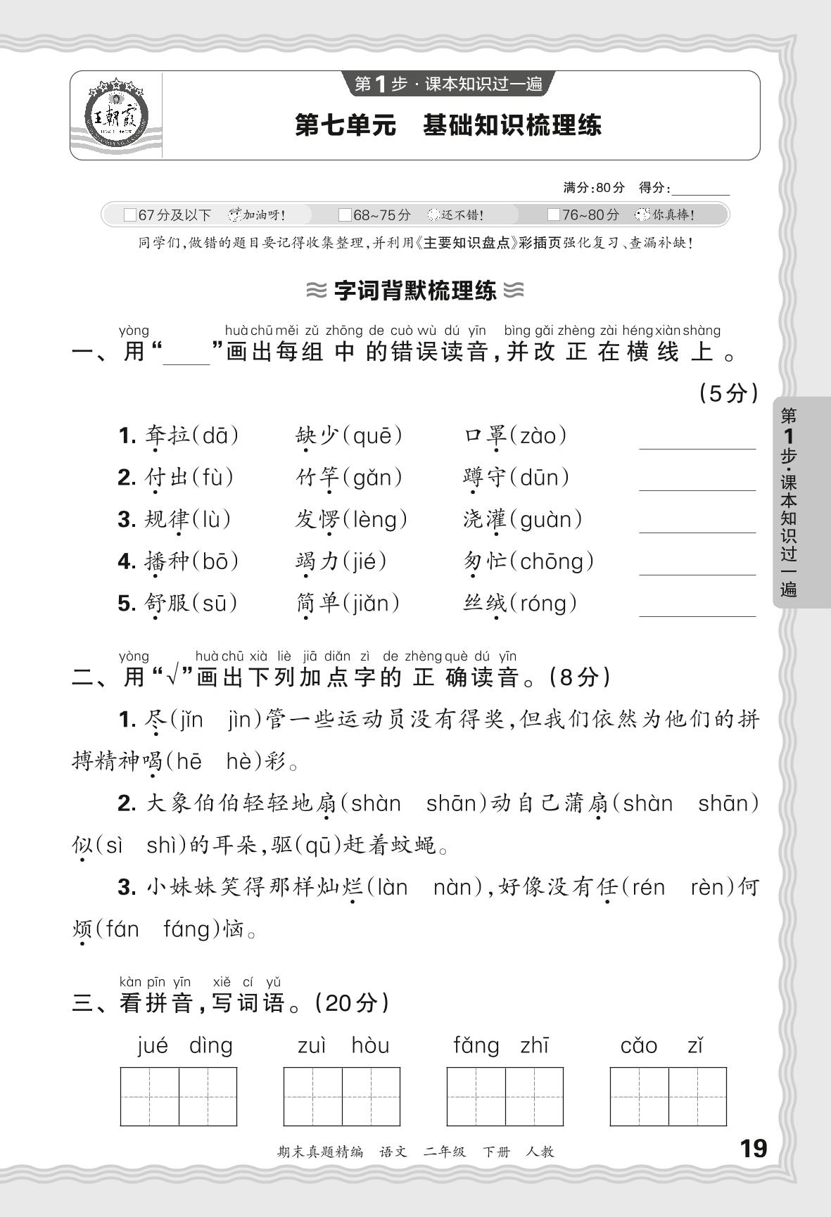 2024春下册二年级语文人教版 期末过课本JB版·第七单元 基础知识梳理练