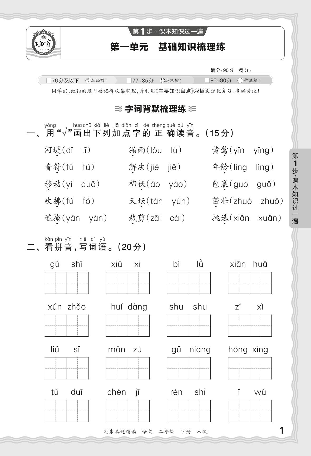 2024春下册二年级语文人教版 期末过课本JB版·第一单元 基础知识梳理练