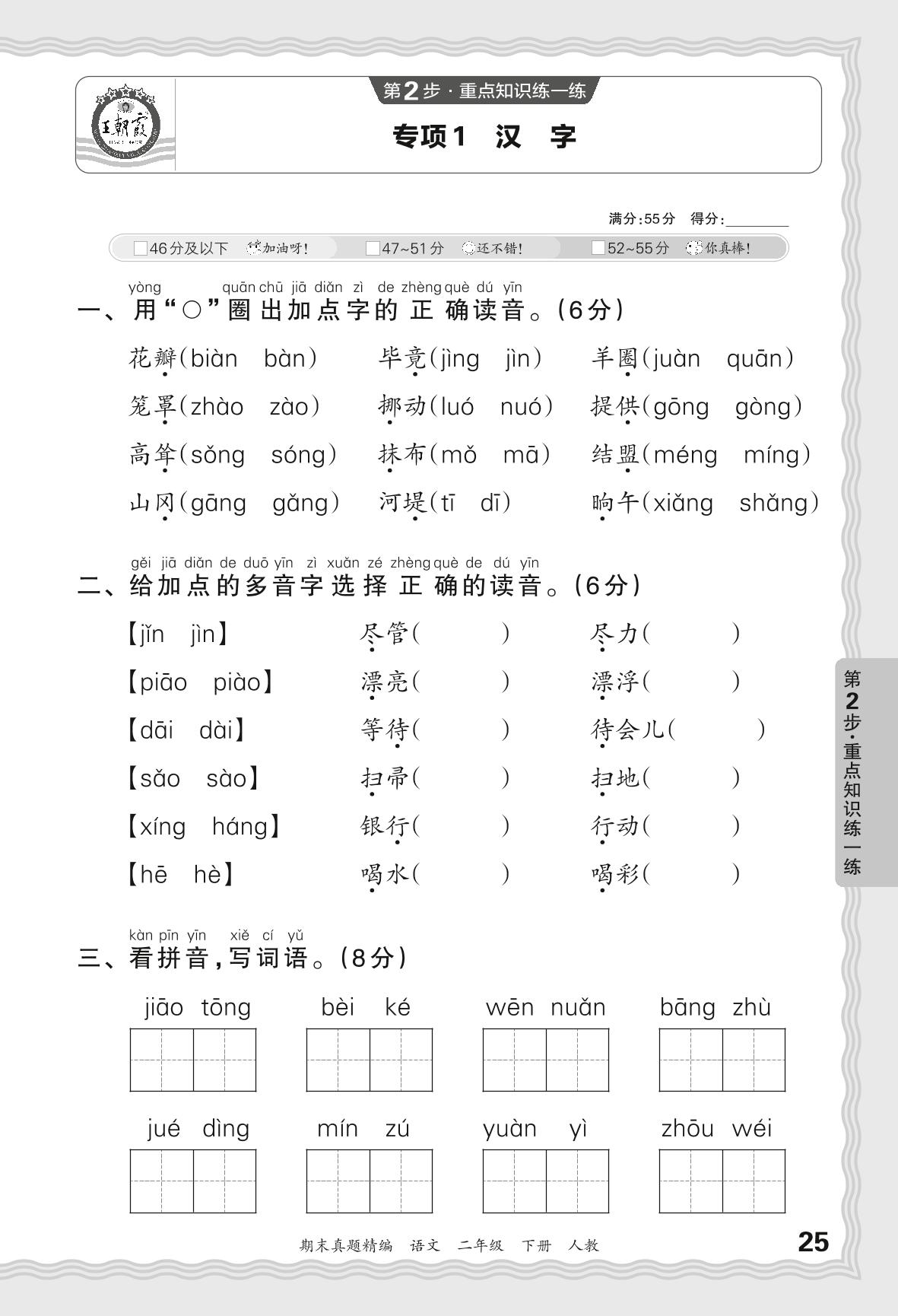 2024春下册二年级语文人教版 期末专项卷JB版·汉字【1】