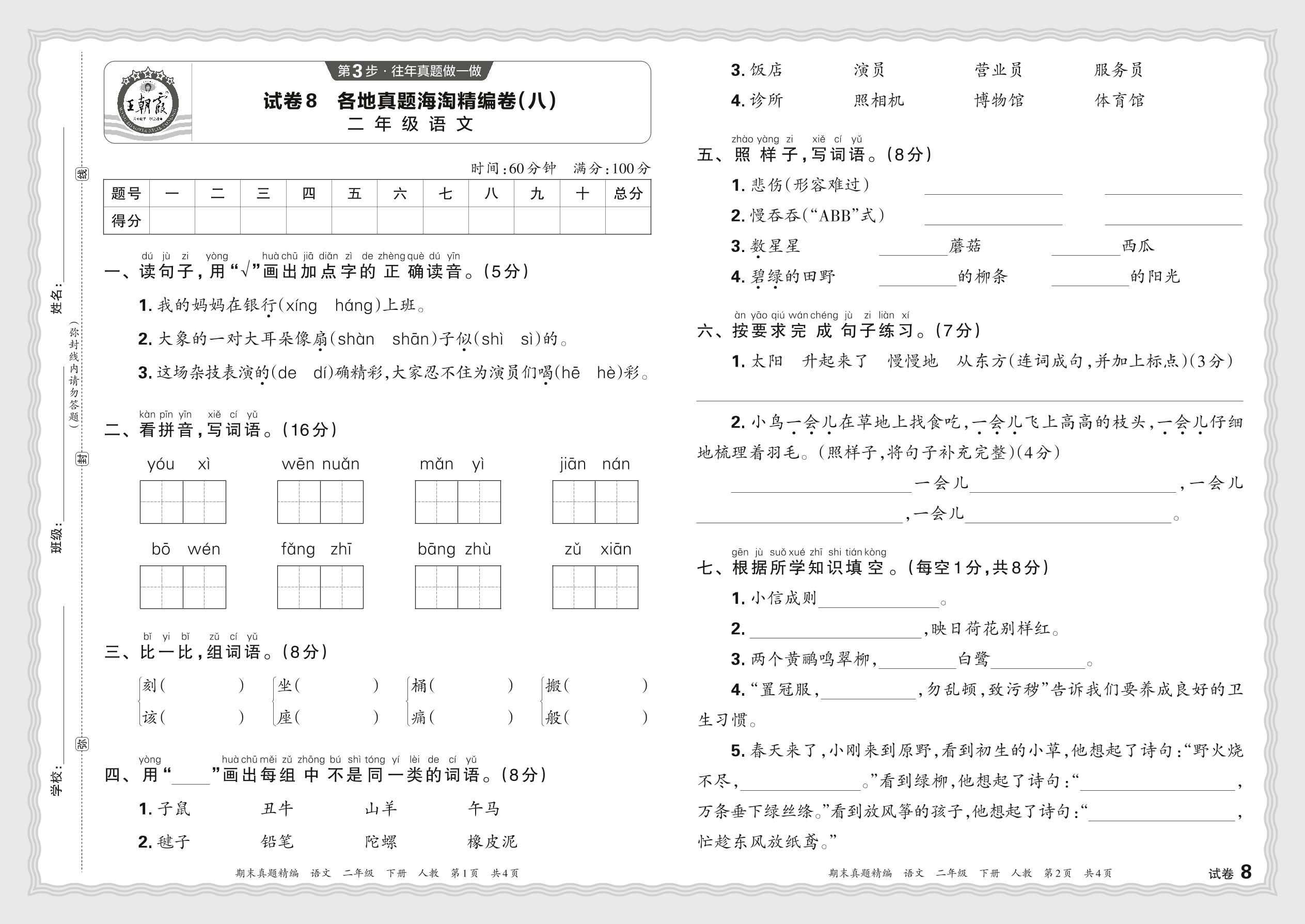 2024春下册二年级语文人教版 各地真题海淘精编卷(八)JB