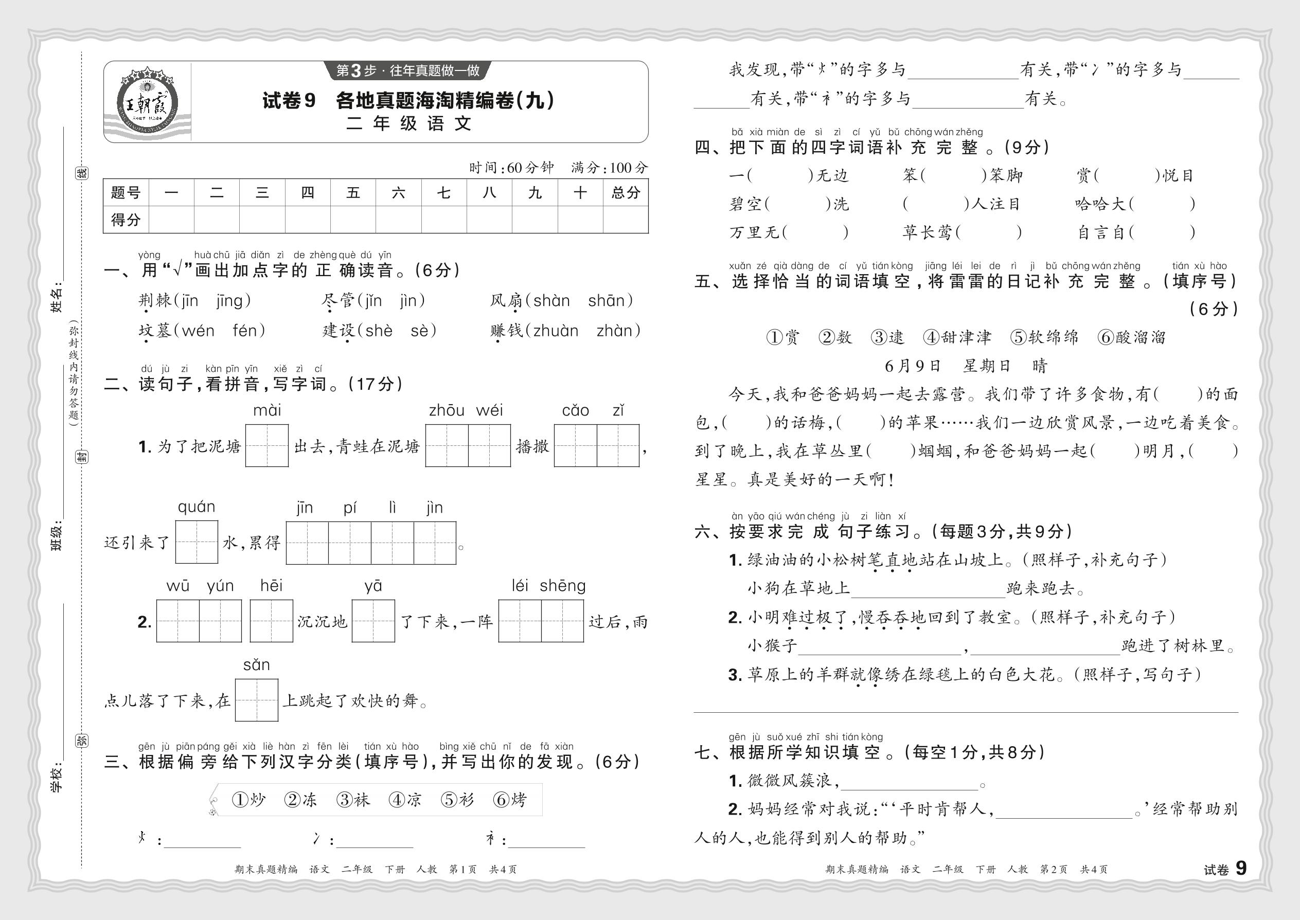 2024春下册二年级语文人教版 各地真题海淘精编卷(九)JB