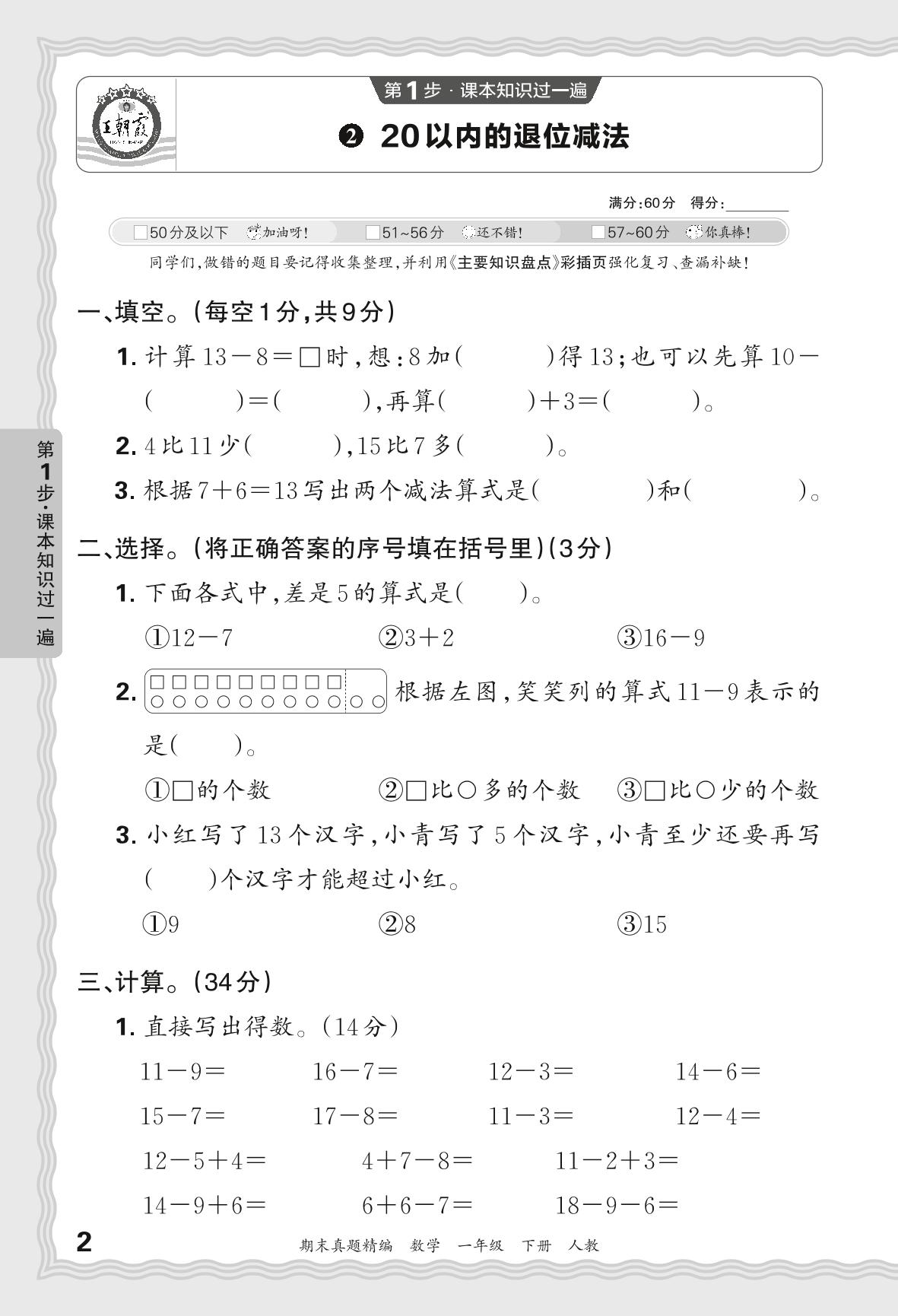 2024春下册一年级数学人教版 期末过课本JB版·20以内的退位减法【2】