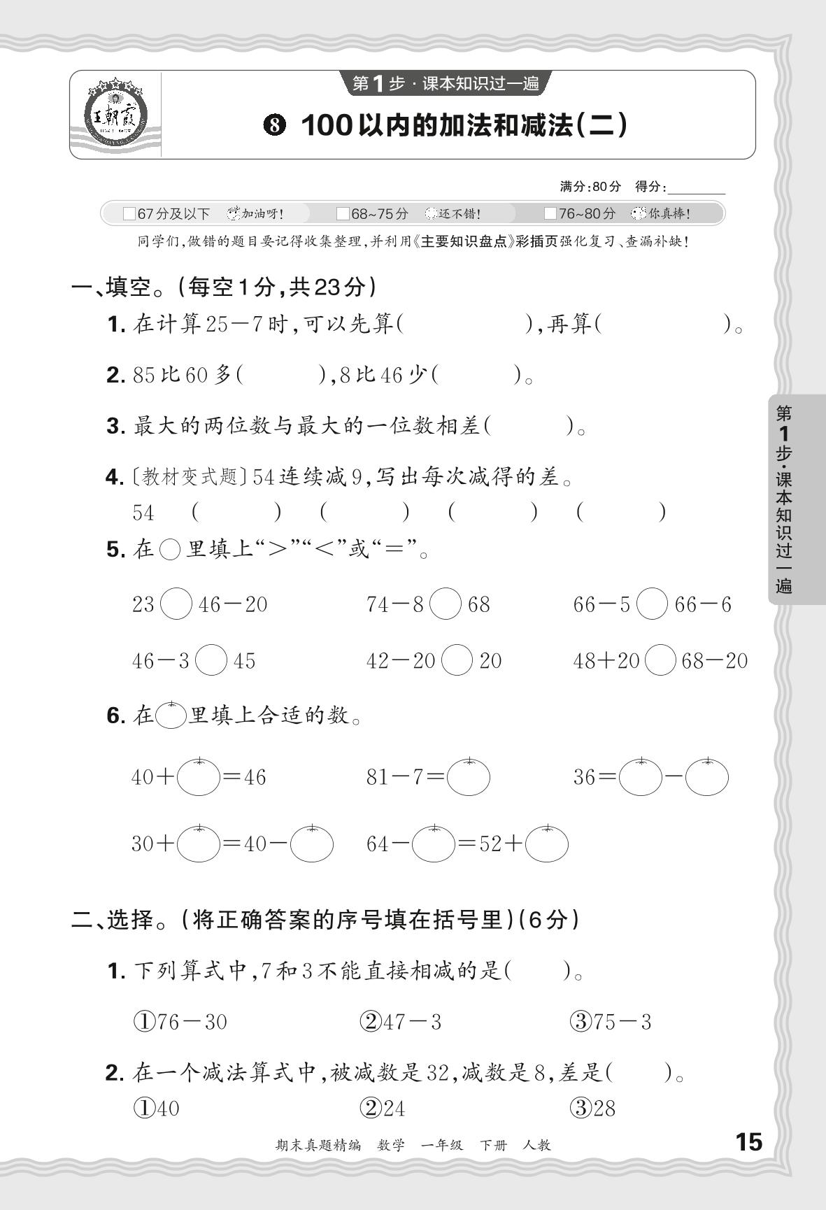 2024春下册一年级数学人教版 期末过课本JB版·100以内的加法和减法(二)【8】
