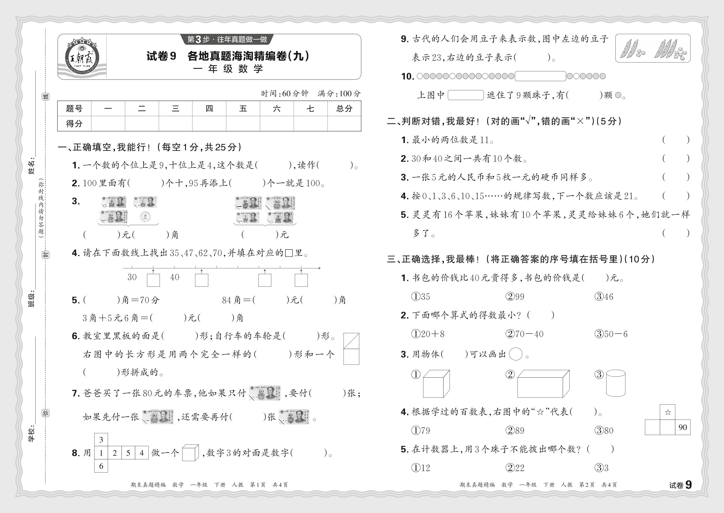 2024春下册一年级数学人教版 各地真题海淘精编卷(九)JB