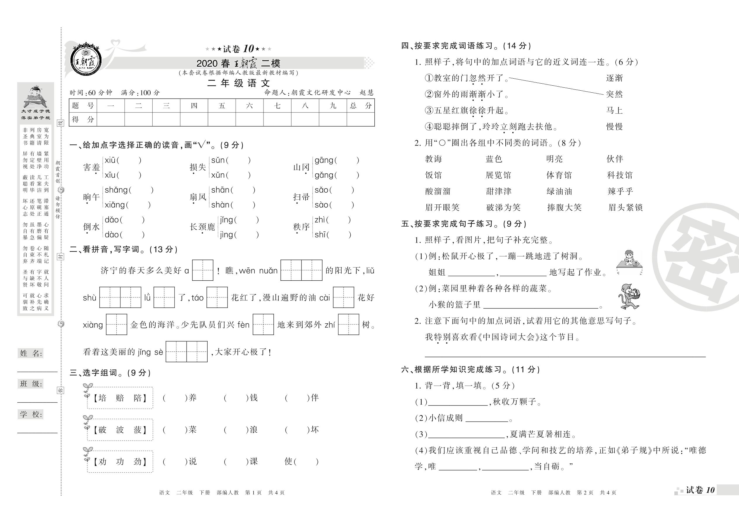 王朝霞期末模拟卷二年级下册语文(人教版)_R21080165817【10】