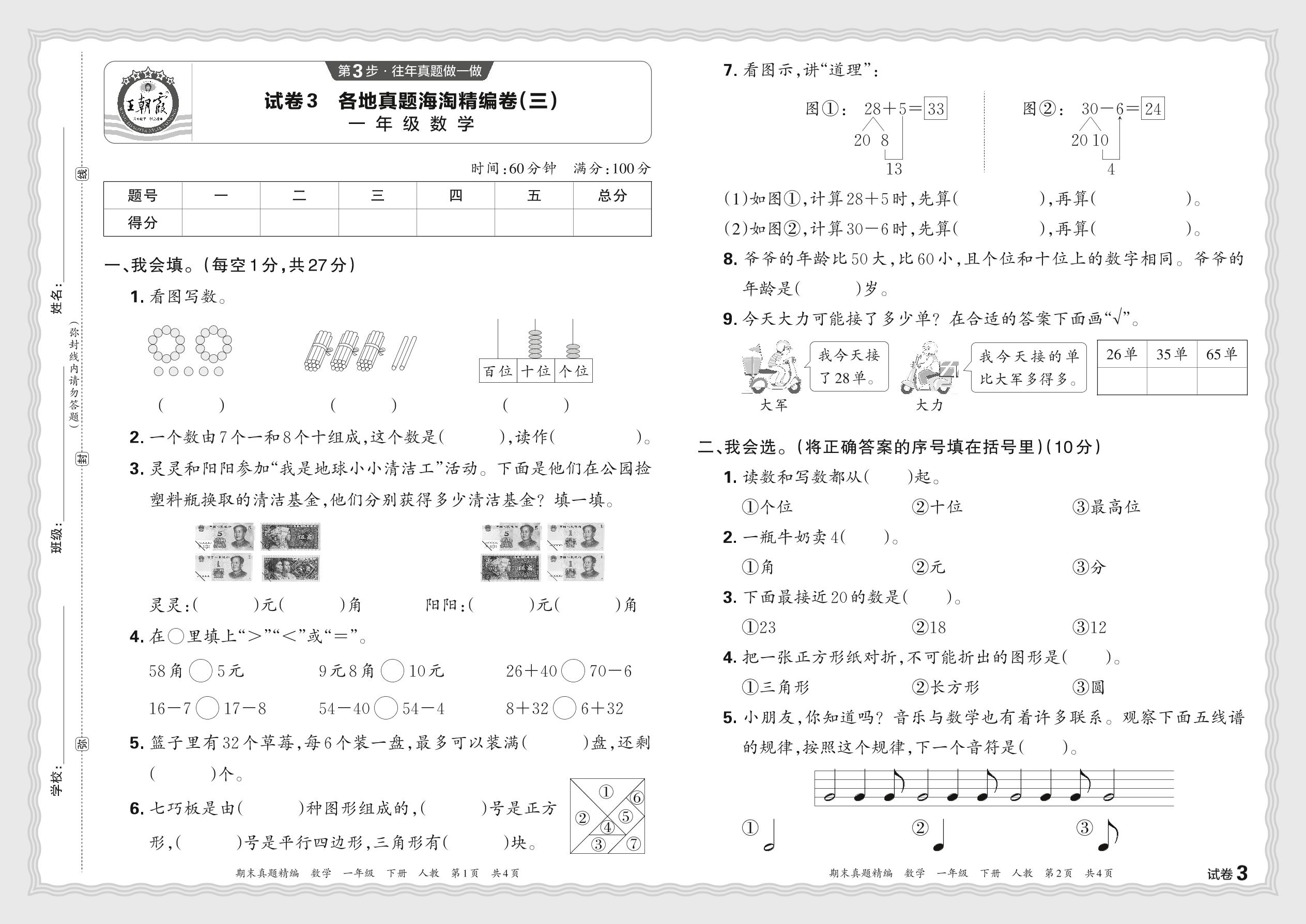 一年级数学人教版下册期末卷