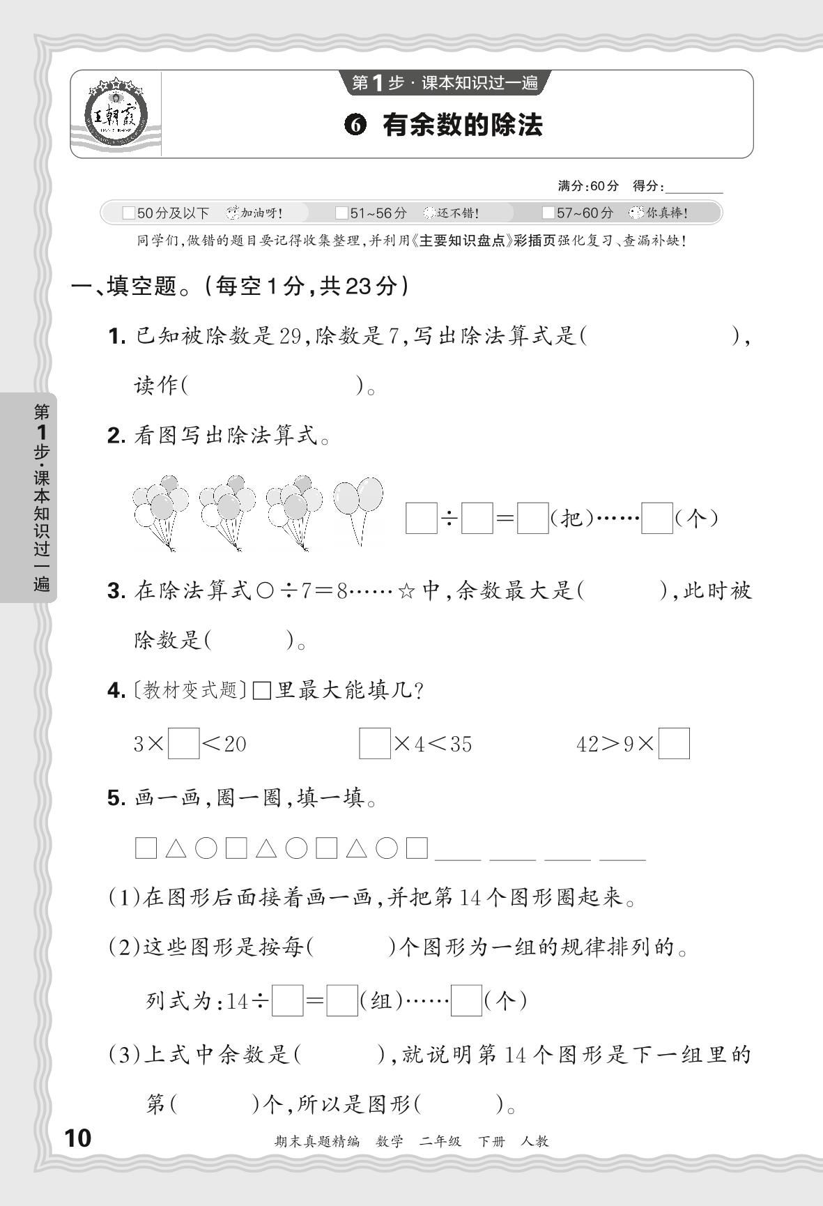 2024春下册二年级数学人教版 期末过课本JB版·有余数的除法【6】