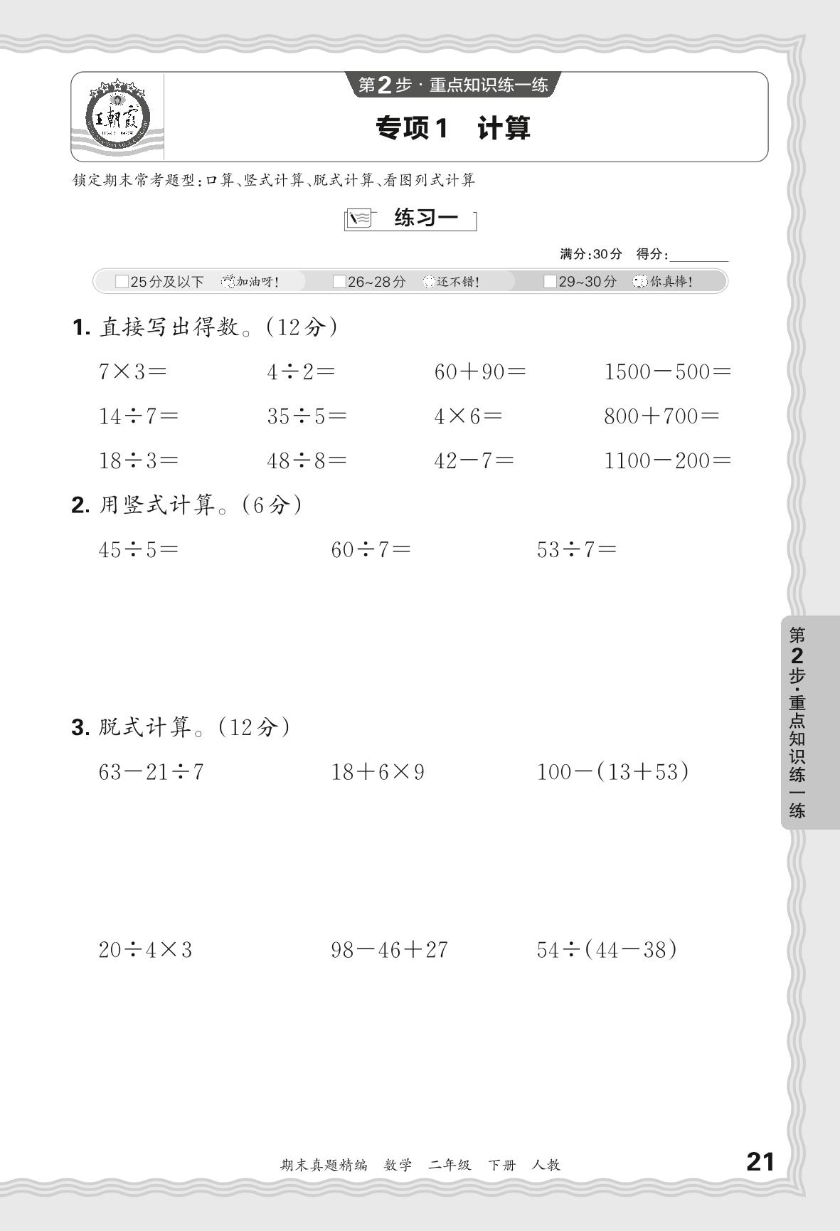 2024春下册二年级数学人教版 期末专项卷JB版·计算【1】