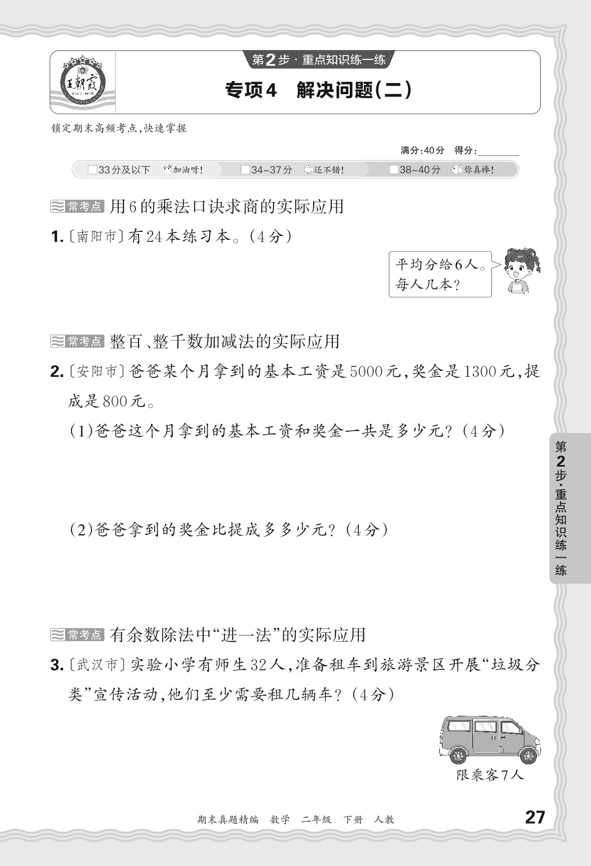2024春下册二年级数学人教版 期末专项卷JB版·解决问题(二)【4】