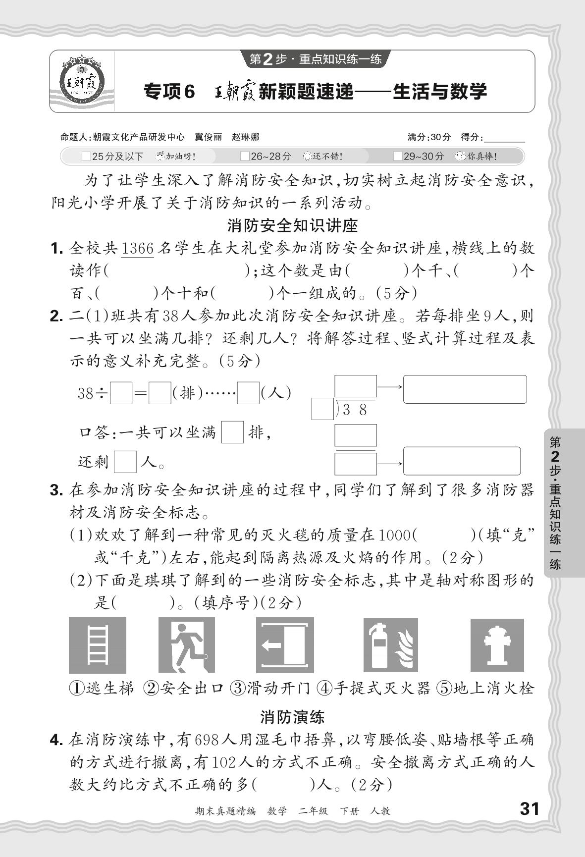 2024春下册二年级数学人教版 期末专项卷JB版·王朝霞新颖题速递——生活与数学【6】