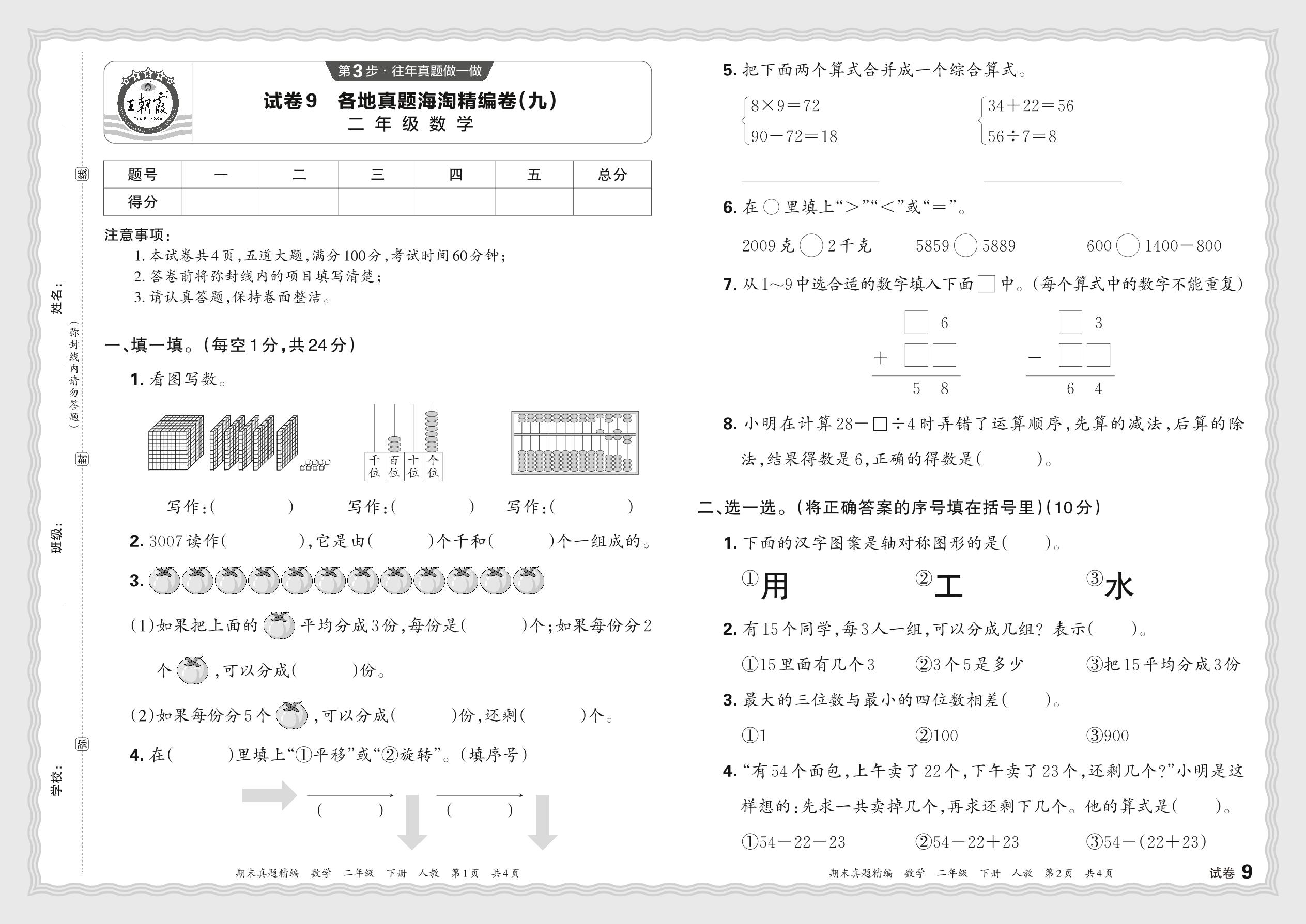 2024春下册二年级数学人教版 各地真题海淘精编卷(九)JB