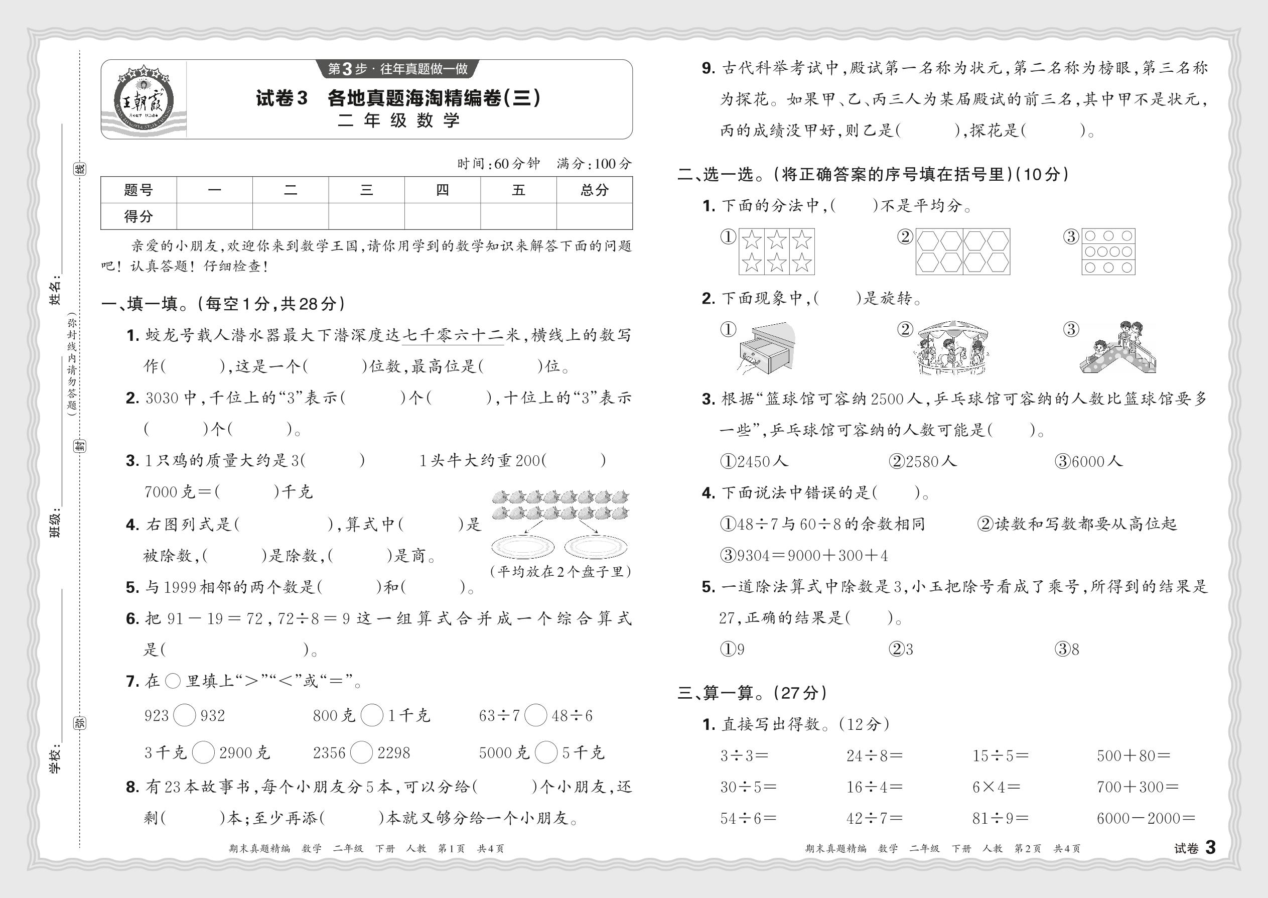 2024春下册二年级数学人教版 各地真题海淘精编卷(三)JB
