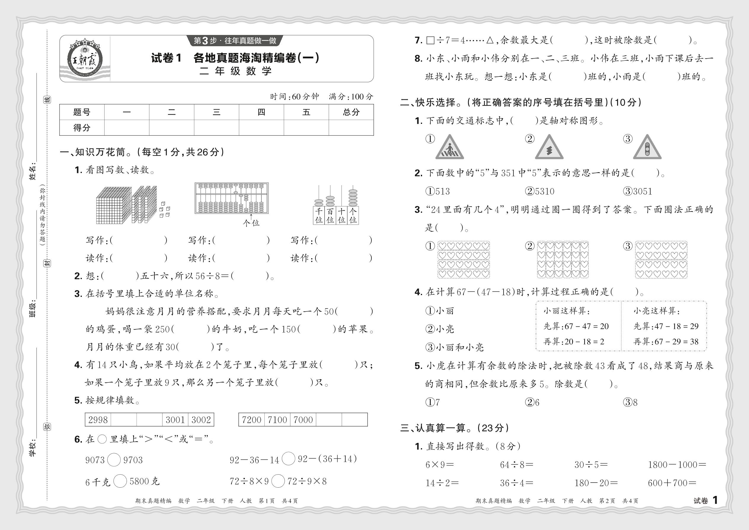2024春下册二年级数学人教版 各地真题海淘精编卷(一)JB