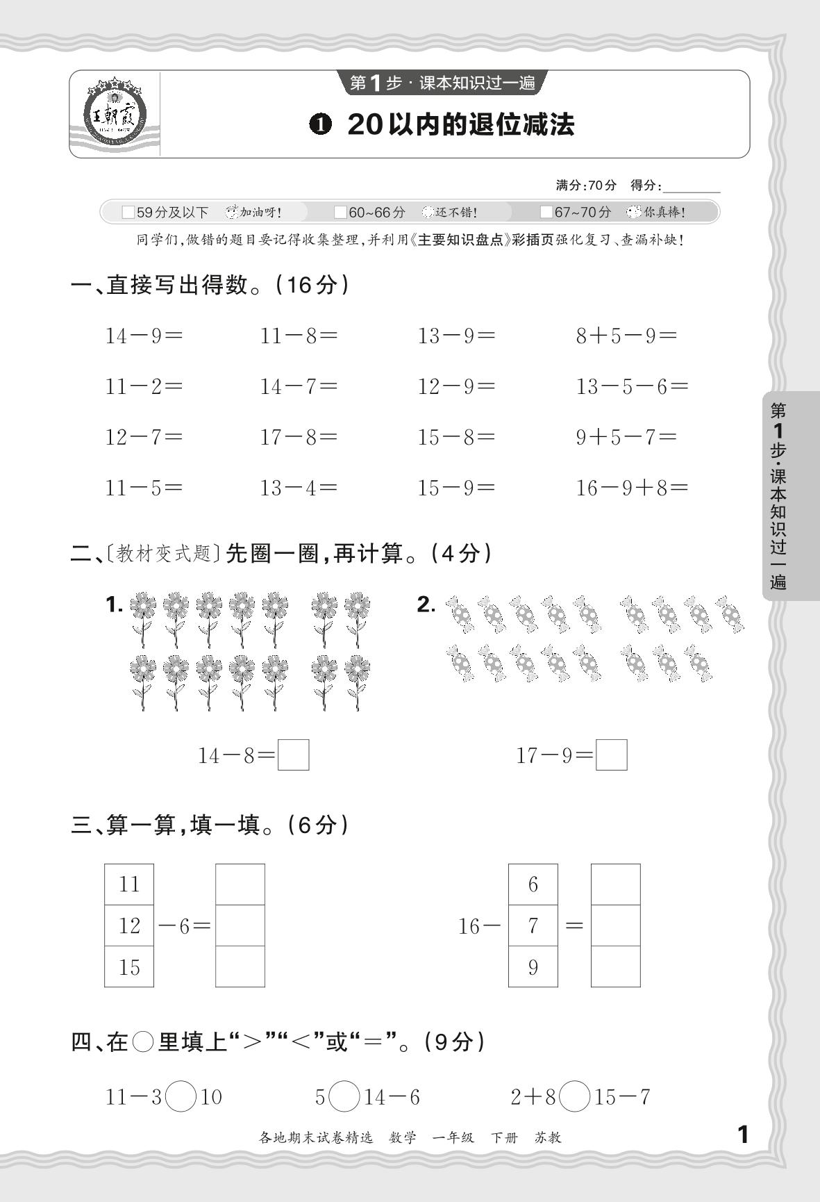 2024春下册一年级数学苏教版 期末过课本JX版·20以内的退位减法【1】