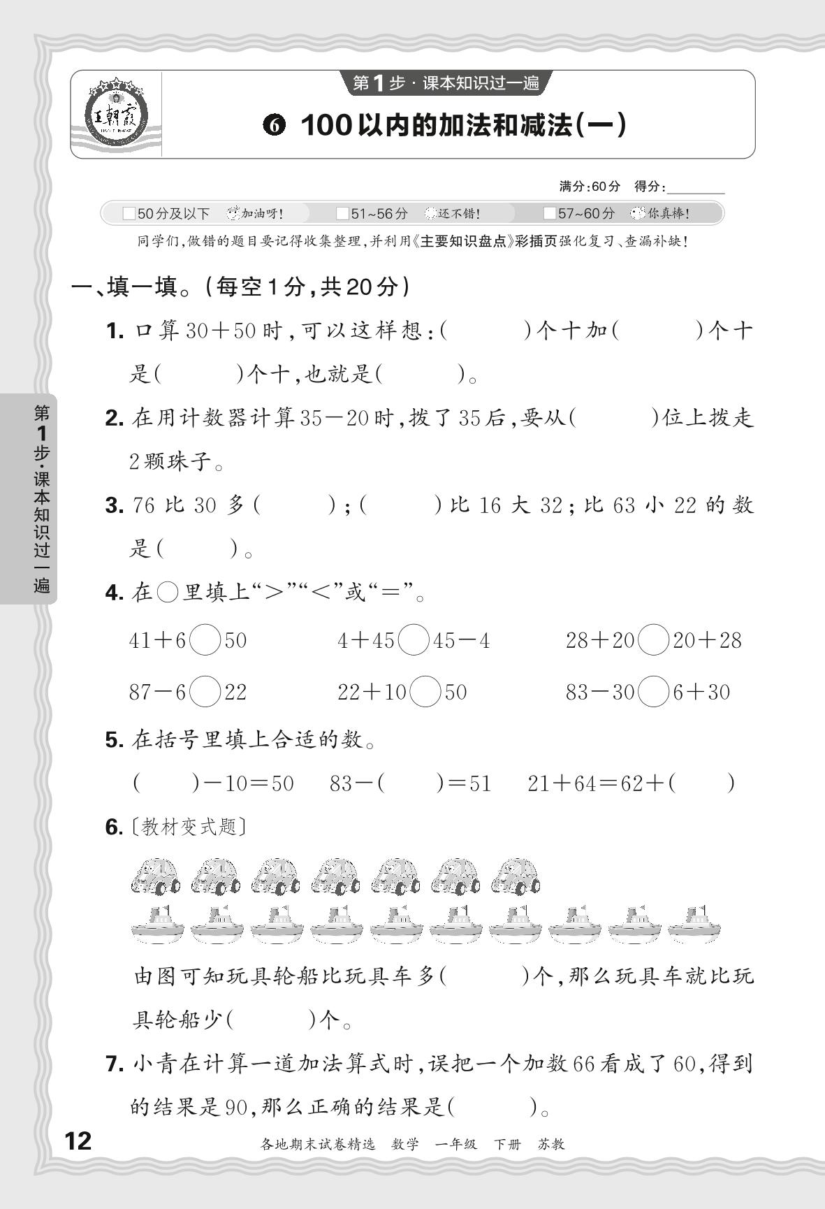 2024春下册一年级数学苏教版 期末过课本JX版·100以内的加法和减法(一)【6】