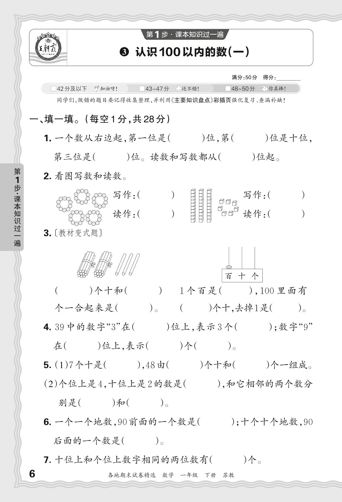 2024春下册一年级数学苏教版 期末过课本JX版·认识100以内的数(一)【3】