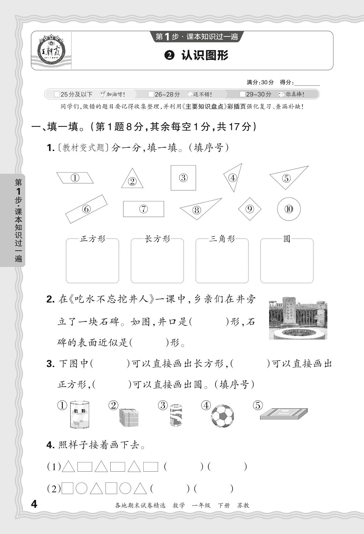 2024春下册一年级数学苏教版 期末过课本JX版·认识图形【2】
